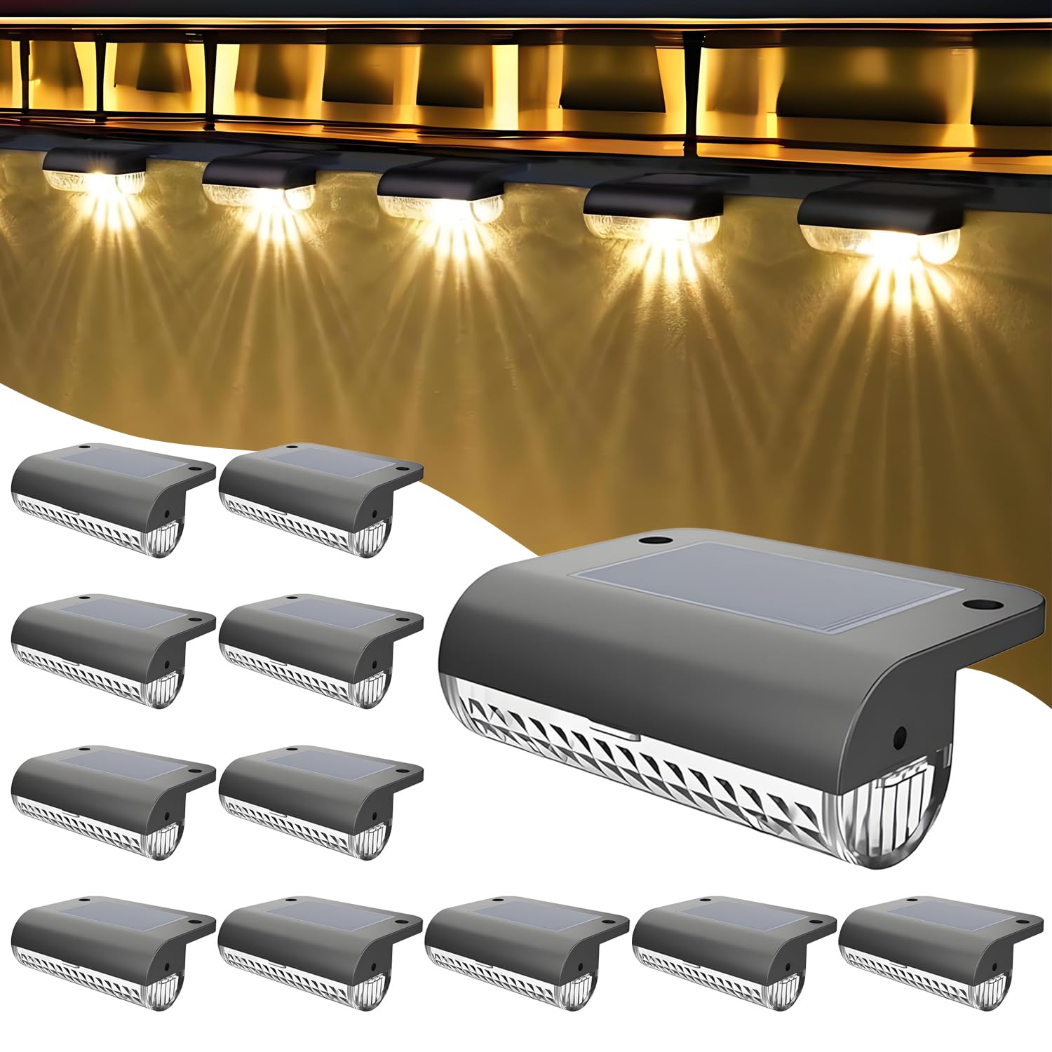 Anmossi Solar Zaunleuchten für Aussen,12 Stück Solar Gartenleuchten, Wasserdichte LED Stufenleuchten für Draussen,Stufen,Zäune,Terrassen,Treppen,Pool und Hof,Warmweiss