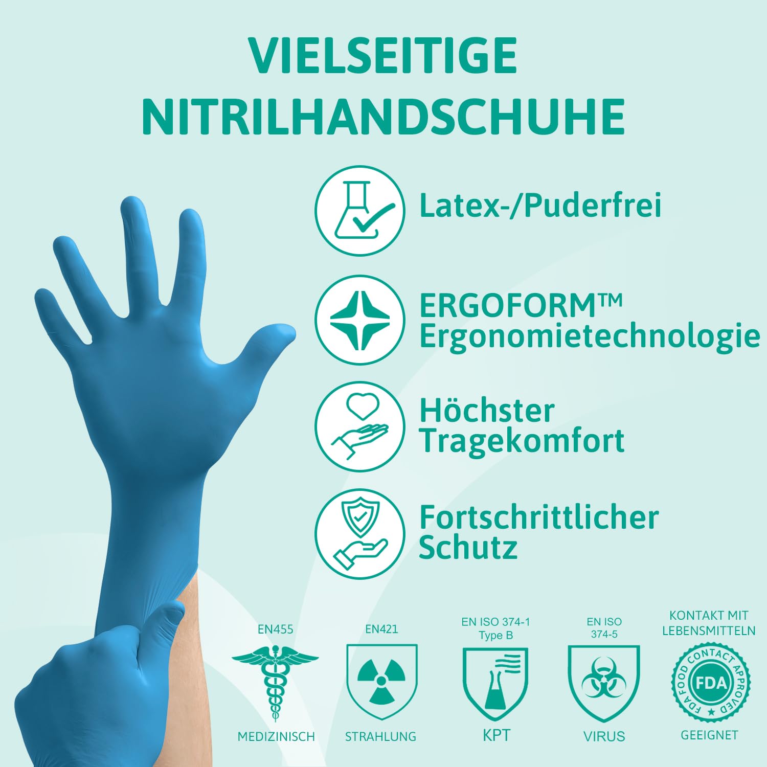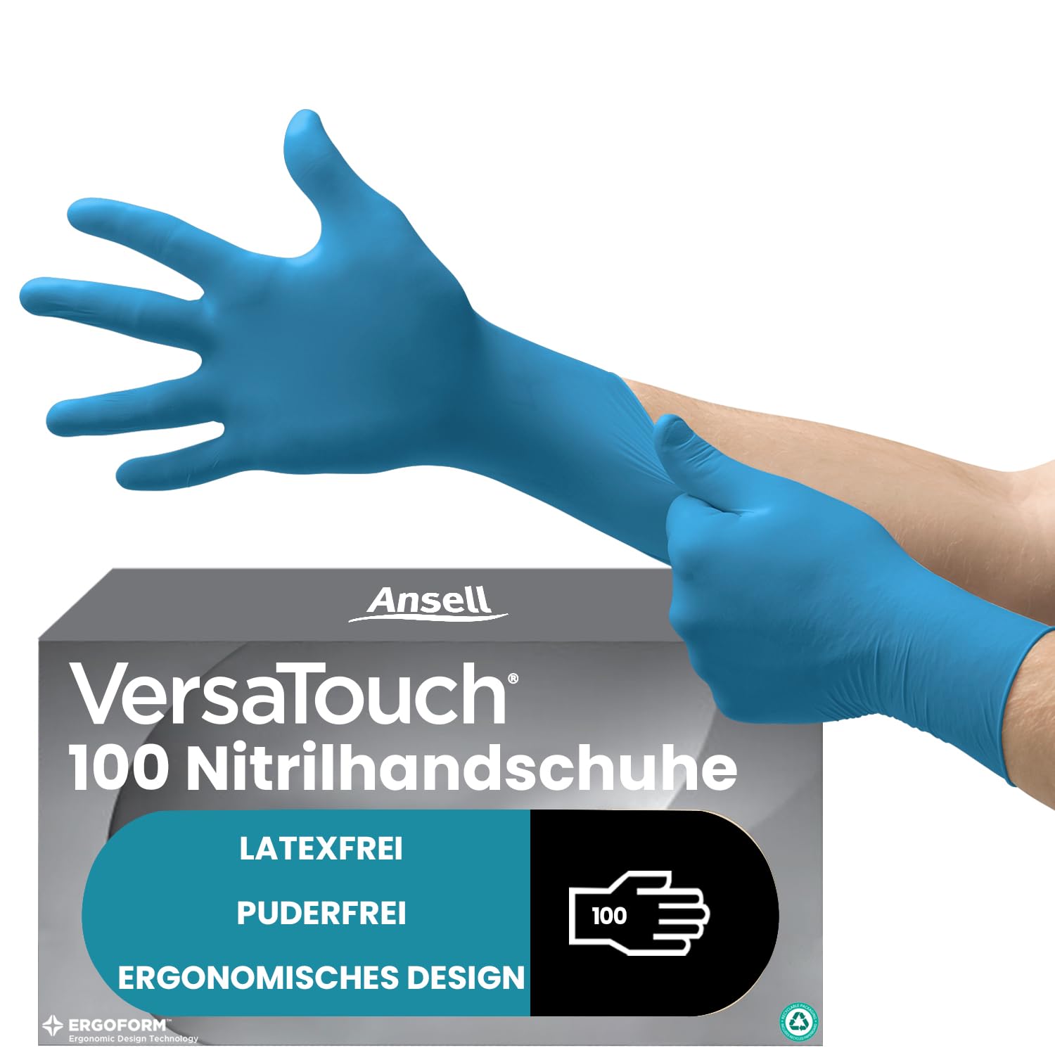 Ansell VersaTouch 92-465 Latexfreie Einmalhandschuhe, Nitrilhandschuhe Puderfrei, Einweghandschuhe Blau, Chemikalien-Schutzhandschuhe, Einweghandschuhe M (100 Stück)