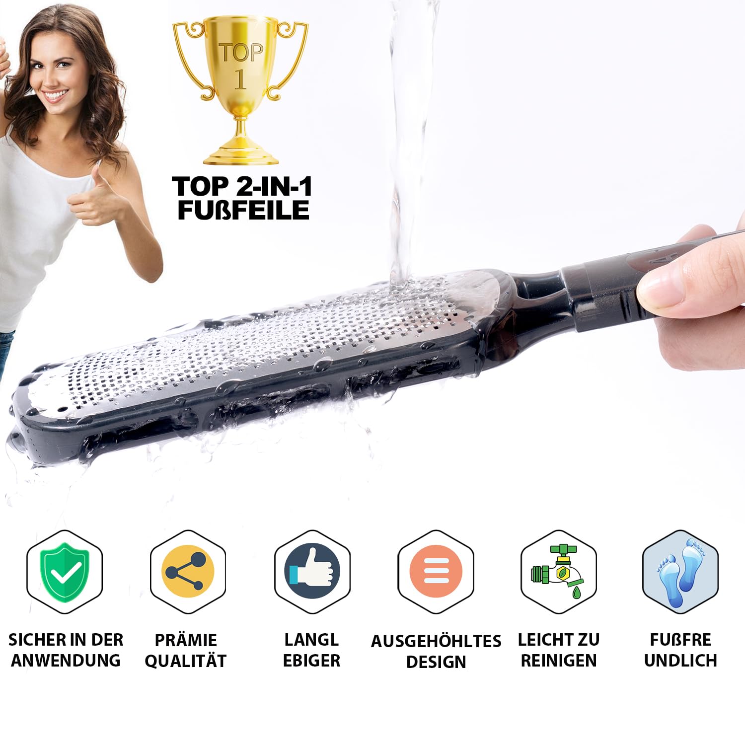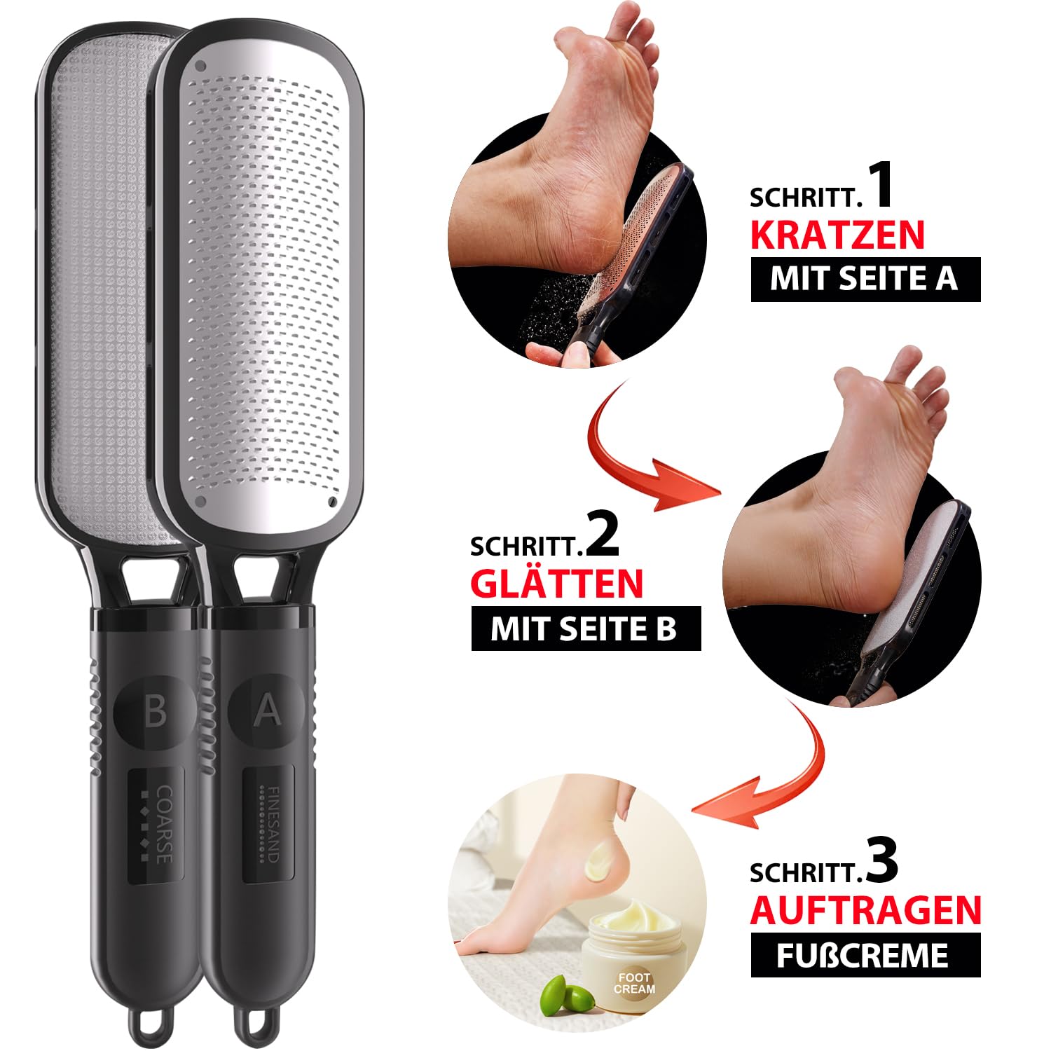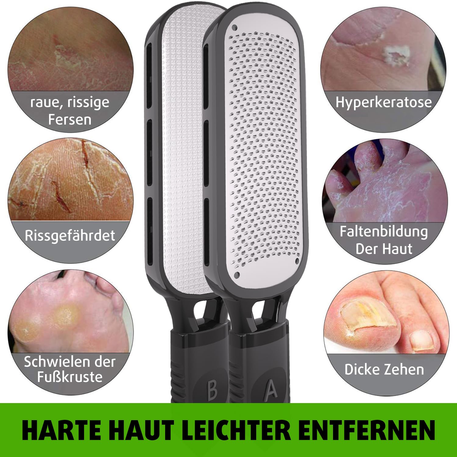Antonki Hornhauthobel Hornhautentferner Edelstahl - Doppelseitig (Grob & Fein) für Fusspflege, Manuelle Pediküre Hornhautfeile gegen Hornhaut Entfernen am Fuss - Sanft & Schnell, Leicht zu Reinigen
