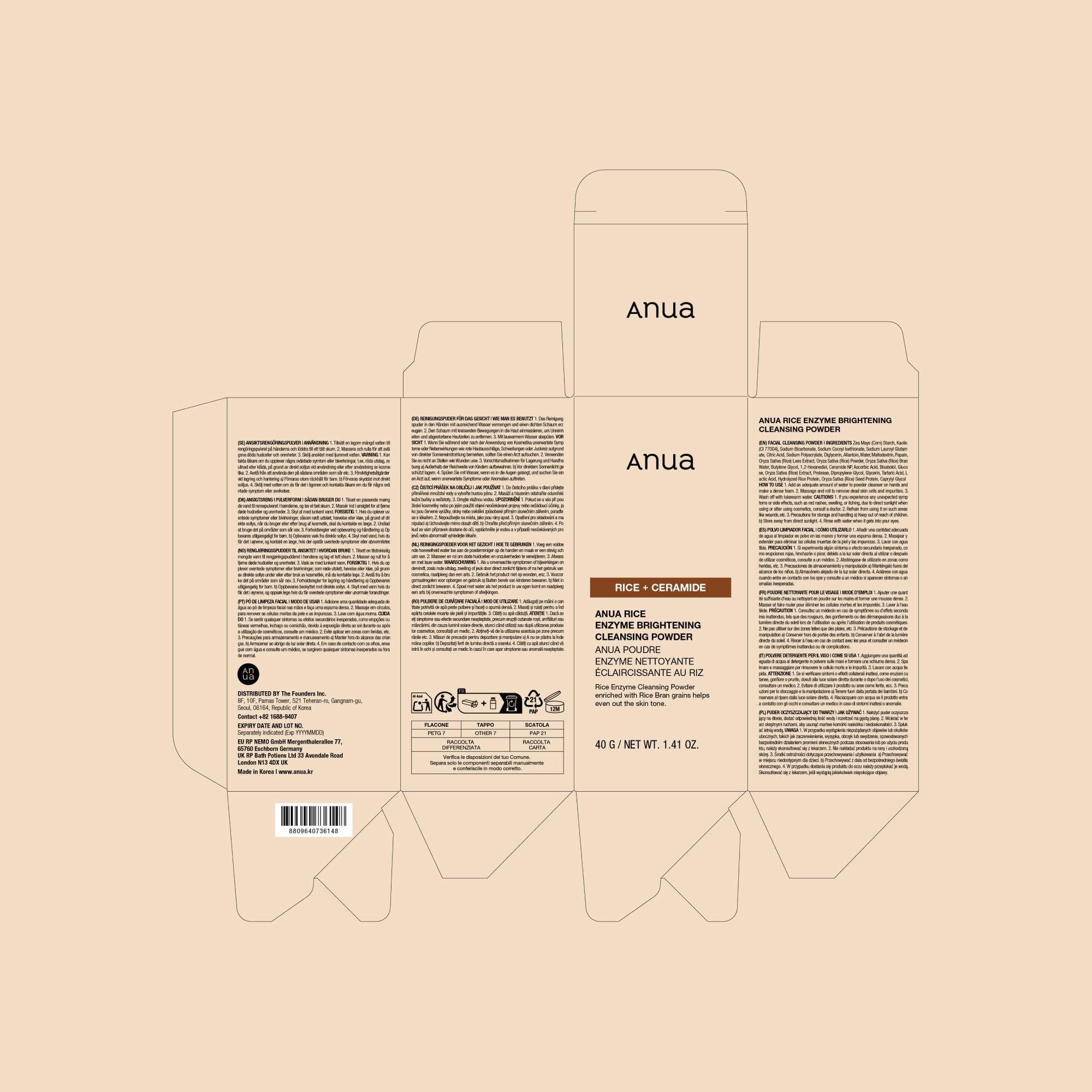 Mindestanzahl für die Bestellung von "ANUA Rice Enzyme Brightening Cleansing Powder – Reismaske & Gesichtsreiniger mit Ceramid & Reis-Enzymen für strahlende, ausgeglichene Haut (40 g)" ist 1.