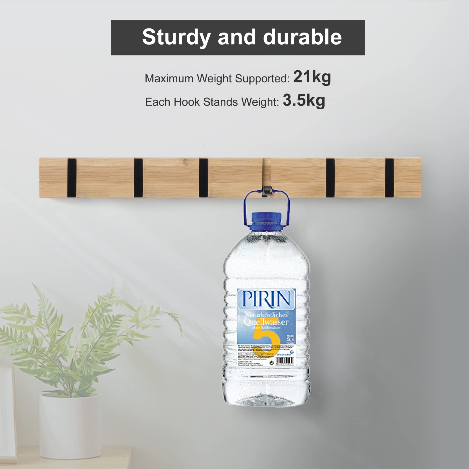 Der Kleiderbügel für Wandhaken ist aus Naturholz gefertigt. Das modische Design kombiniert glatte Haken mit Details aus natürlicher Holzstruktur und schafft einen attraktiven und koordinierten Look in Ihrem Schlafzimmer, Wohnzimmer usw.Technische Daten:Materialien: Holz + AluminiumlegierungAbmessungen: 43 * 5.5 cmGewicht: 300 gAbstand zwischen den Befestigungslöchern: 37 cm Jeder Haken hat ein Gewicht von 3.5 kg Maximales unterstütztes Gewicht: 20 kg.Lieferinhalt:2 x Garderobenhaken holz4 x Schrauben4 x Anker
