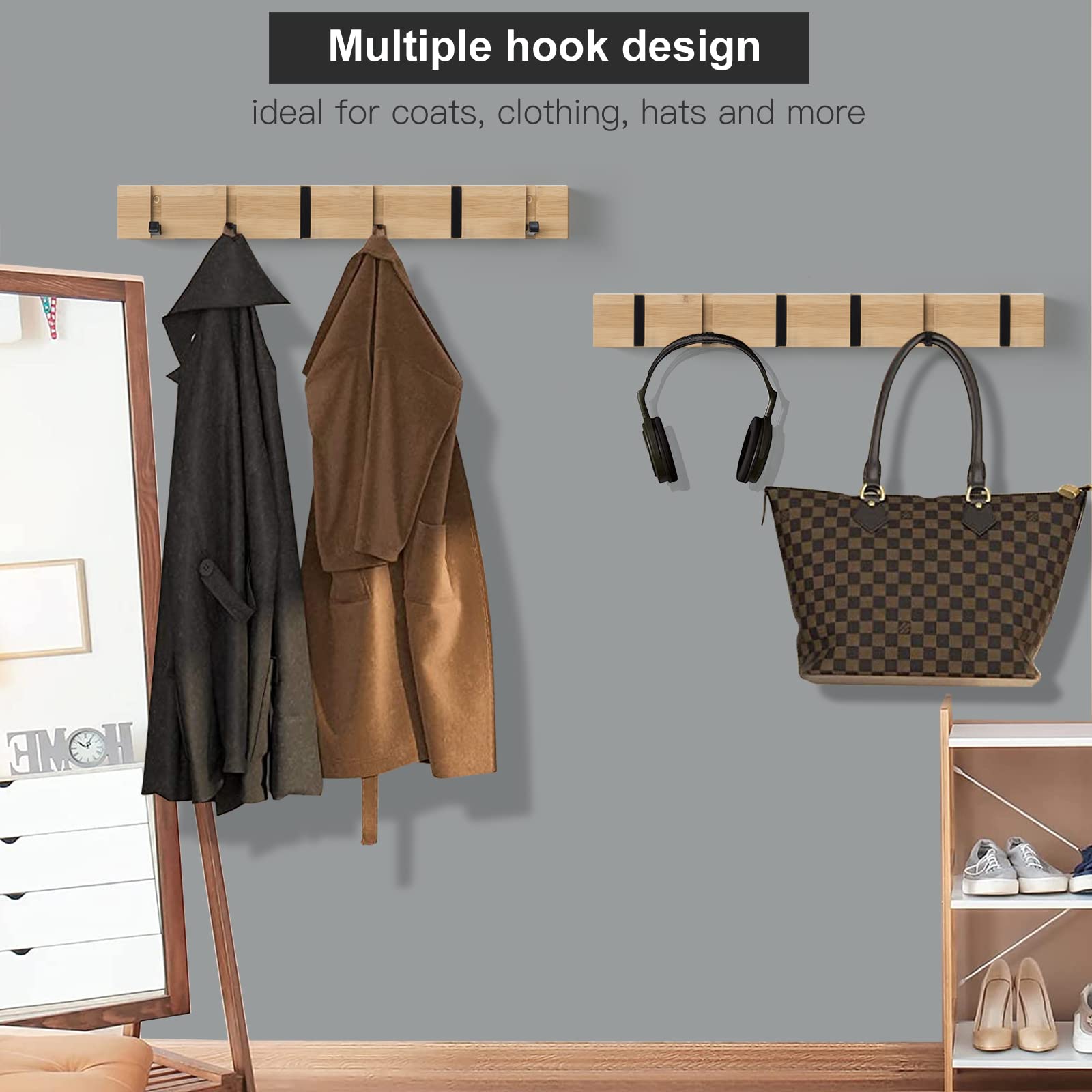 ANVODE 2 Stück Garderobenhaken Wandmontierter, Kleiderhaken Garderobenleiste mit 6 Faltbar Haken für Jacken, Mäntel, Hüte, Schals, Handtaschen