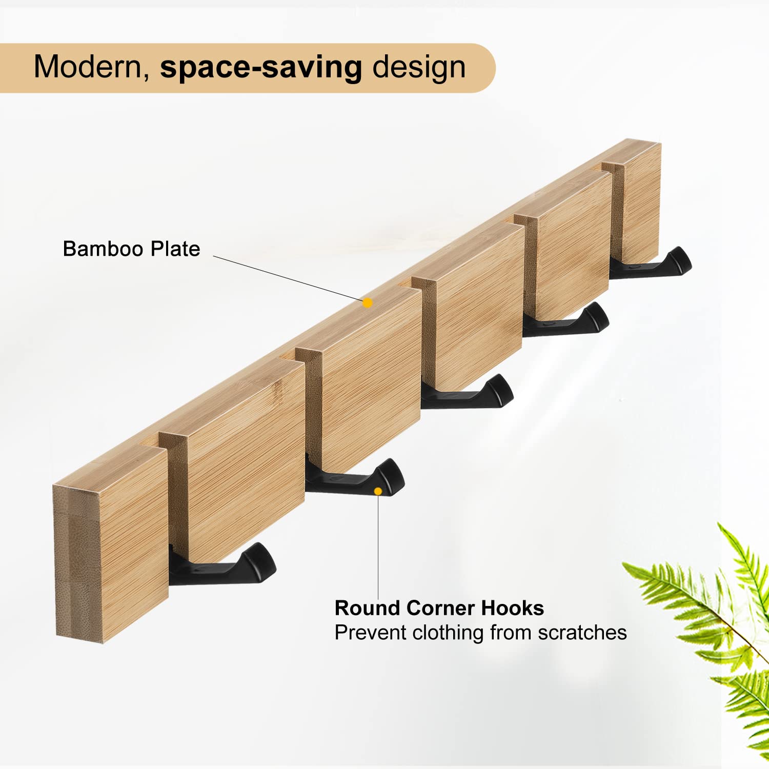 ANVODE 2 Stück Garderobenhaken Holz Wand, Holzplatte Garderobenleiste Faltbarer Kleiderhaken mit 5 Haken für Jacken, Hüte und Handtaschen (42cm)