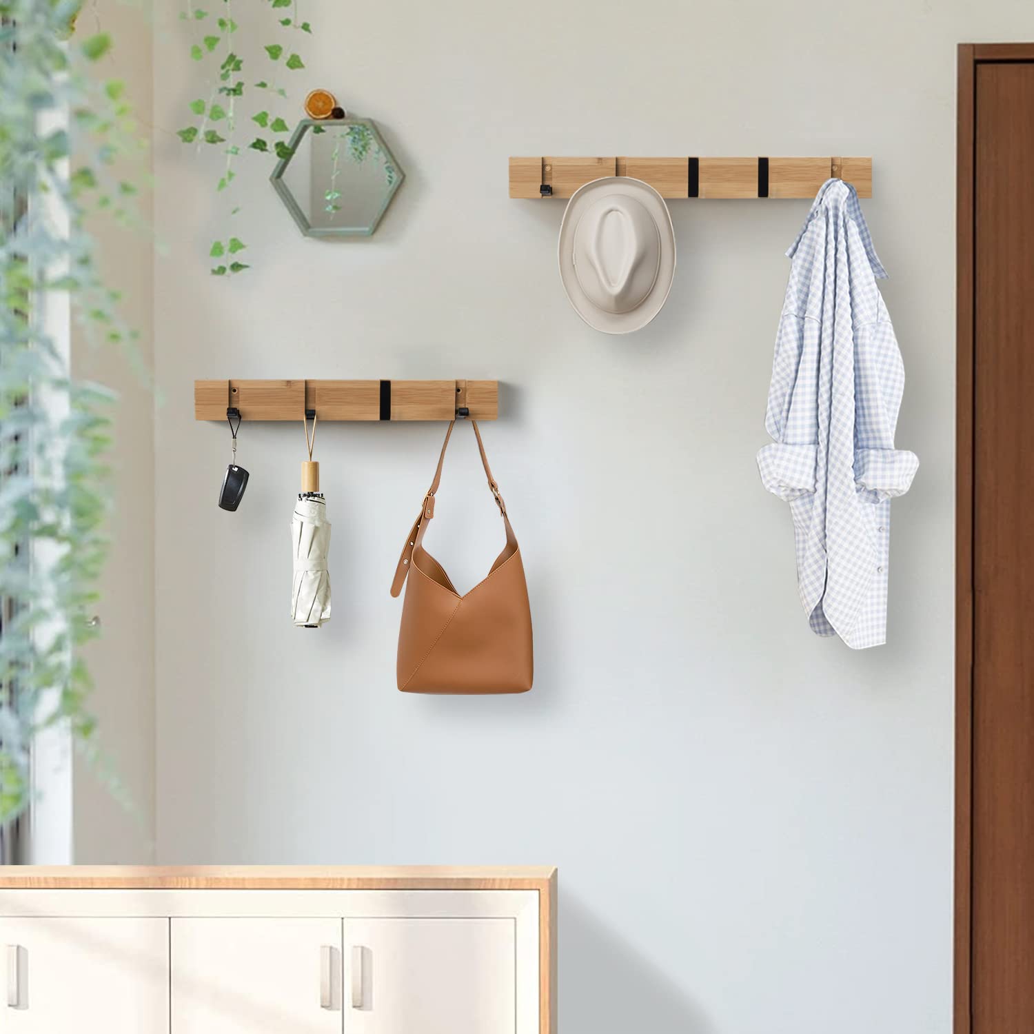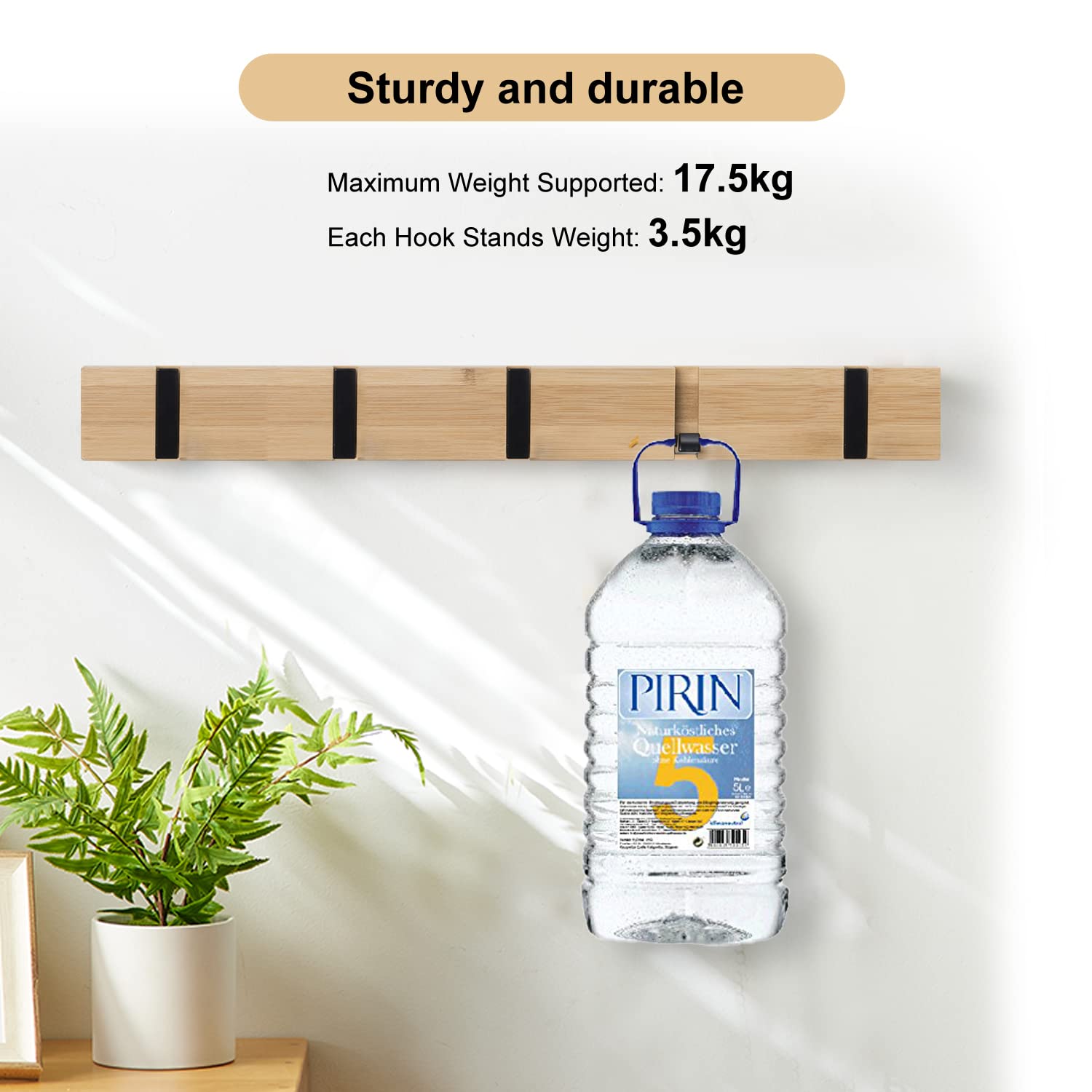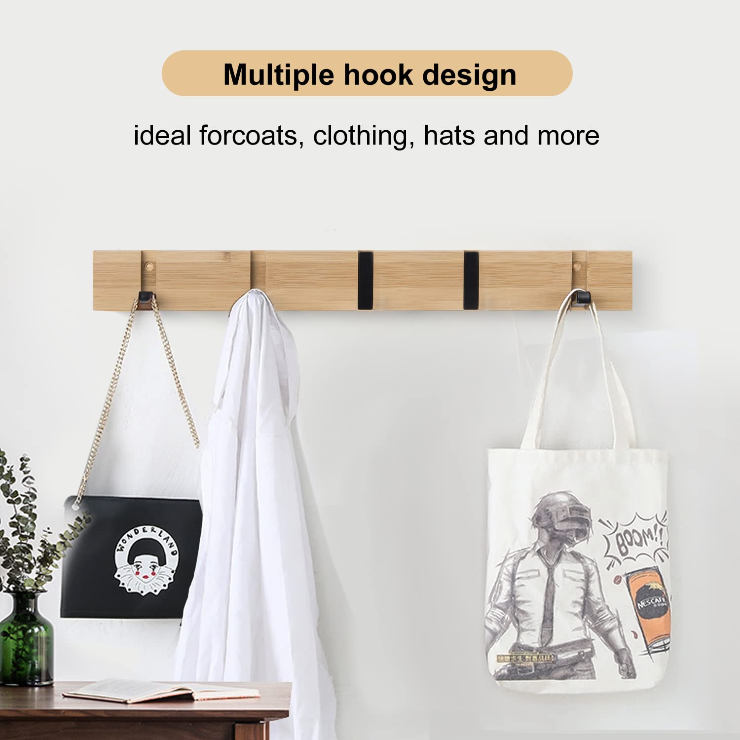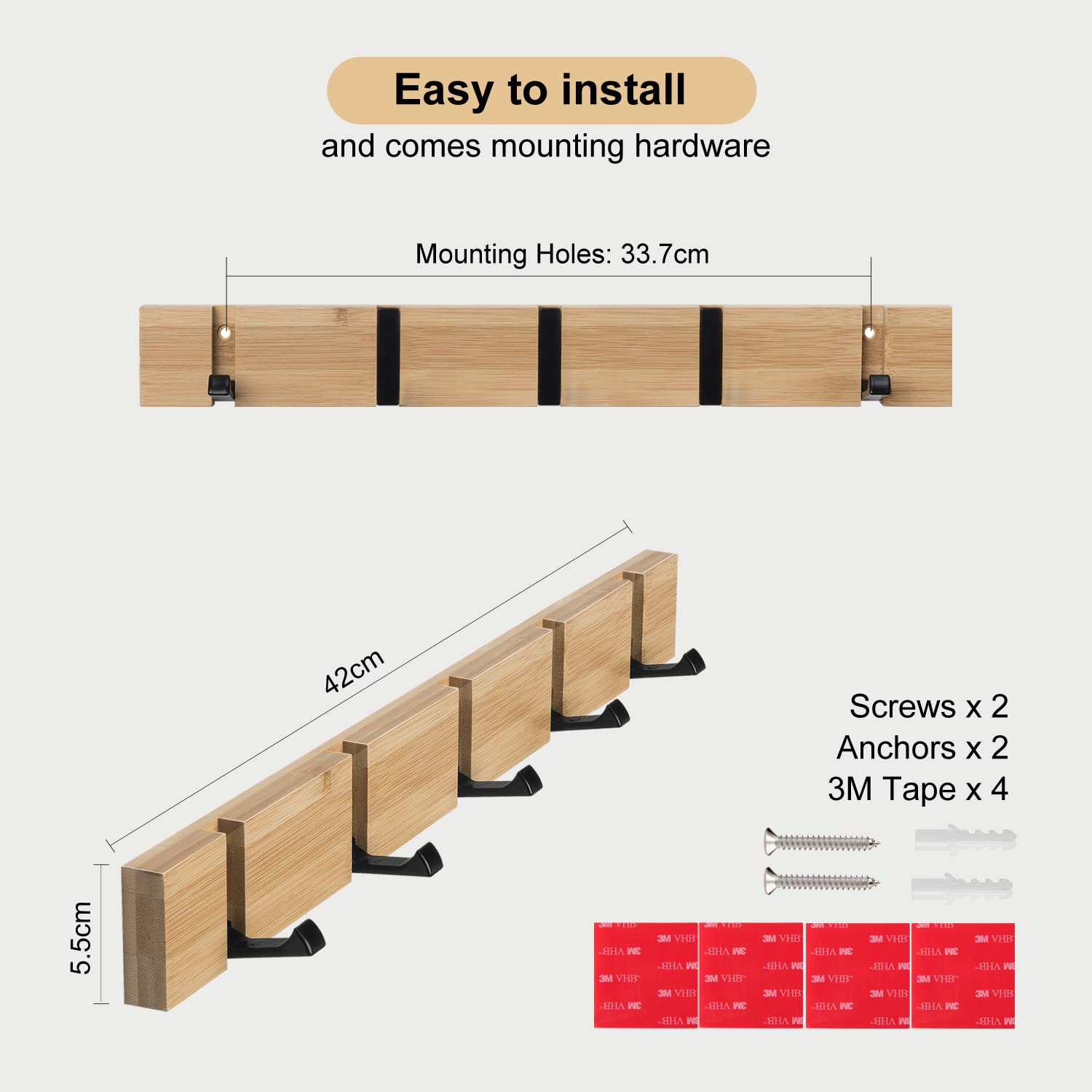 ANVODE Hakenleiste Kleiderhaken Holz, Hölzernes Garderobenleiste Faltbarer Wandgarderoben mit 5 Beweglichen Haken für Jacken, Hüte und Handtaschen (42cm)