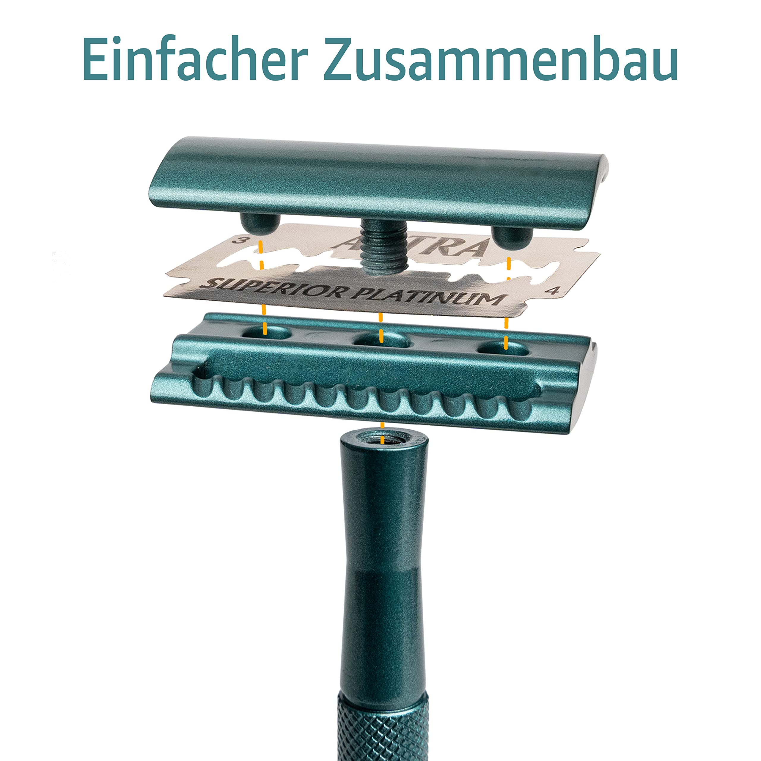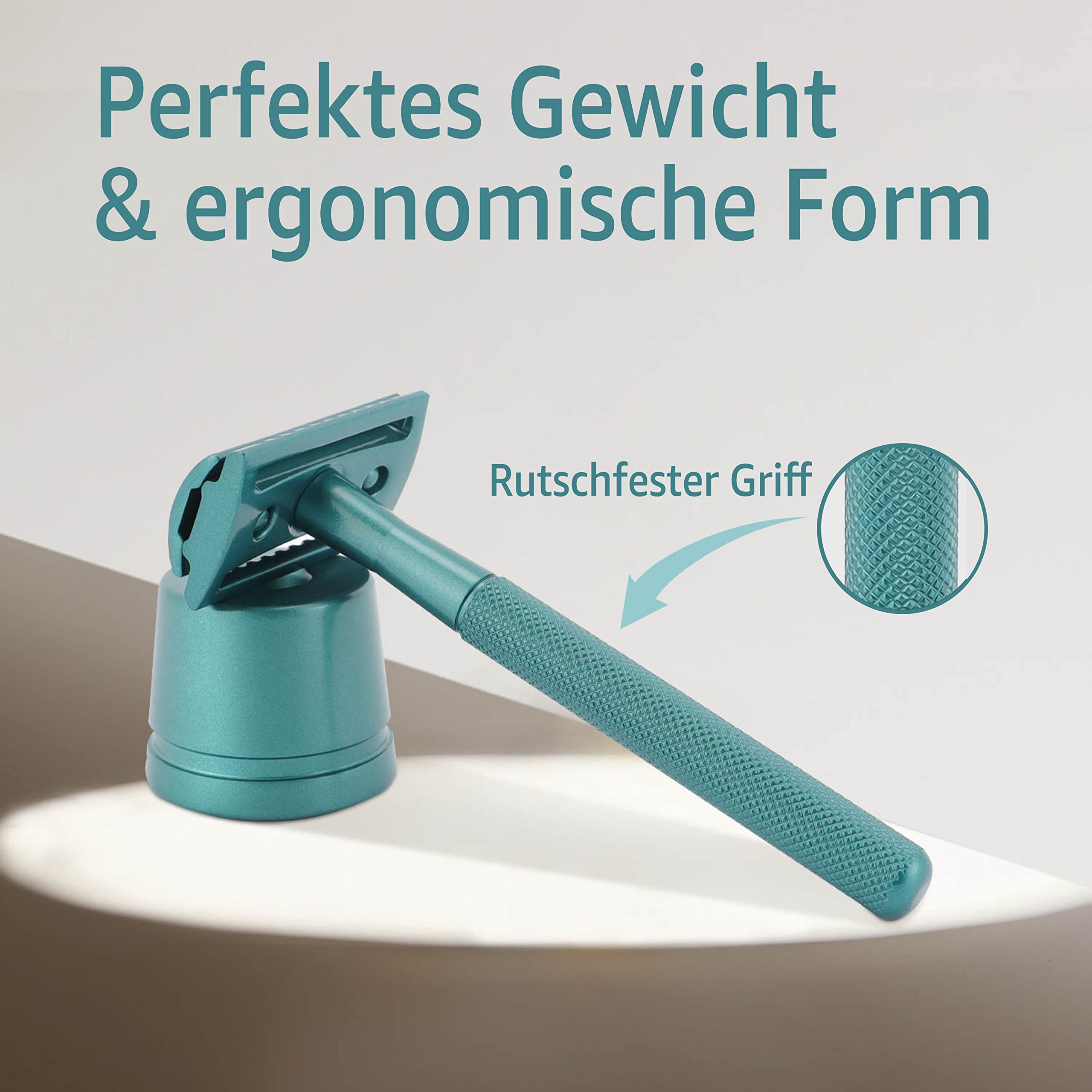 ANYMALE® Plastikfreier Rasierhobel Azure Edition - Set mit Ständer und 5 ASTRA Klingen - Nassrasierer für Damen und Herren