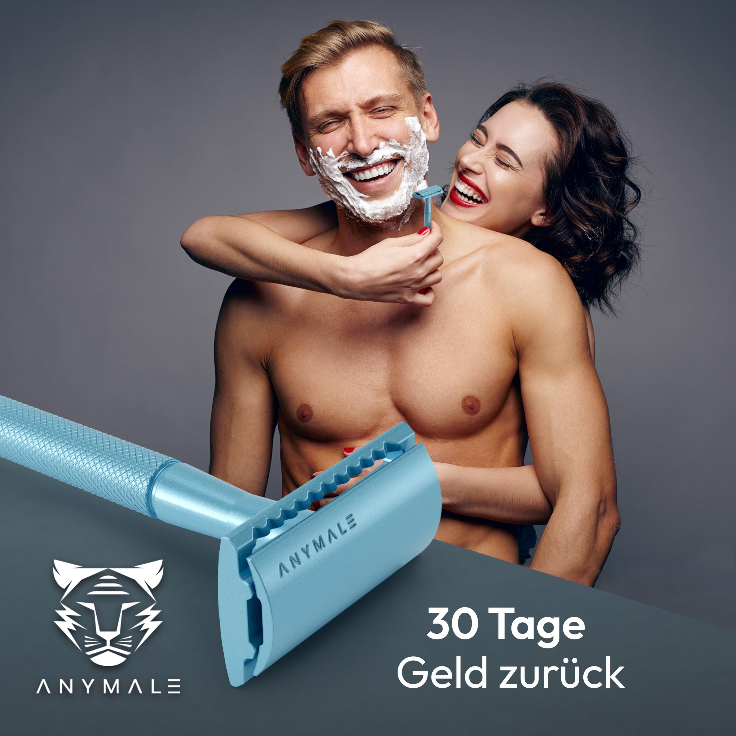 ANYMALE® Rasierhobel - Set mit Ständer und Klingenschutz - 5 Klingen inklusive - Zero Waste Rasierer für Damen und Herren - Arctic Edition