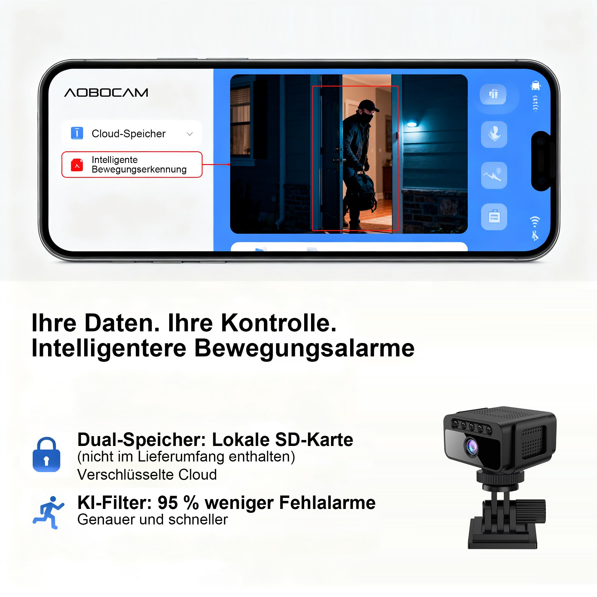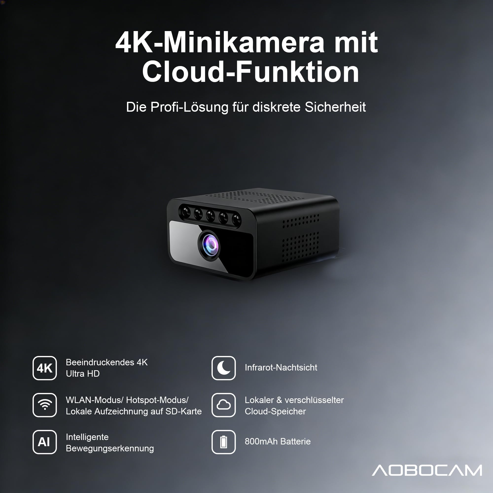 AOBOCAM Mini Kamera 4K WLAN – Intelligente Überwachung mit Nachtsicht für Innen
