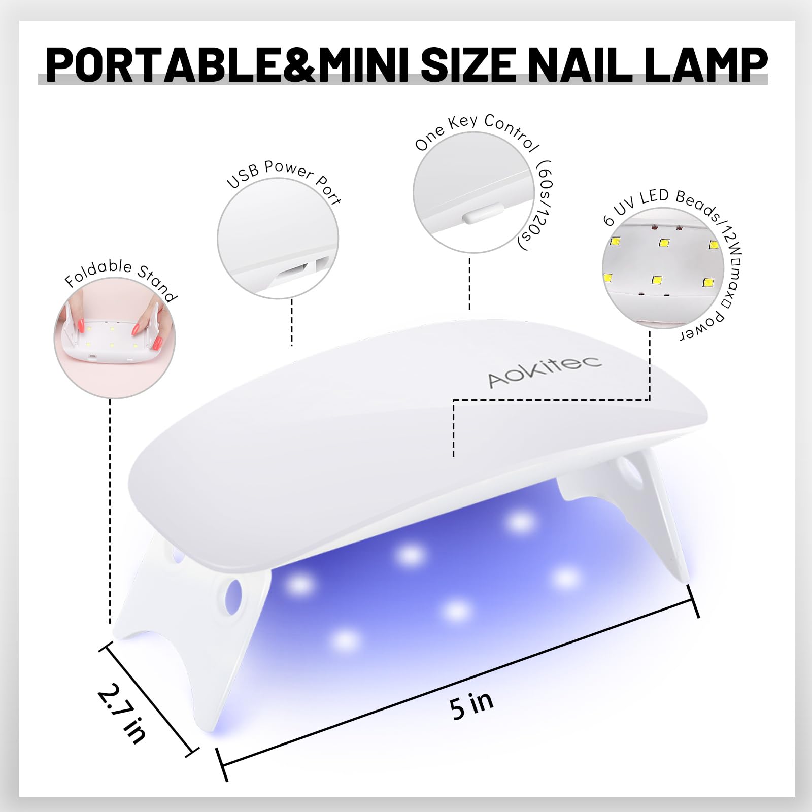 Aokitec Mini UV LED Nagellampe Weiss – Tragbarer Nageltrockner USB fuer Gelnagel