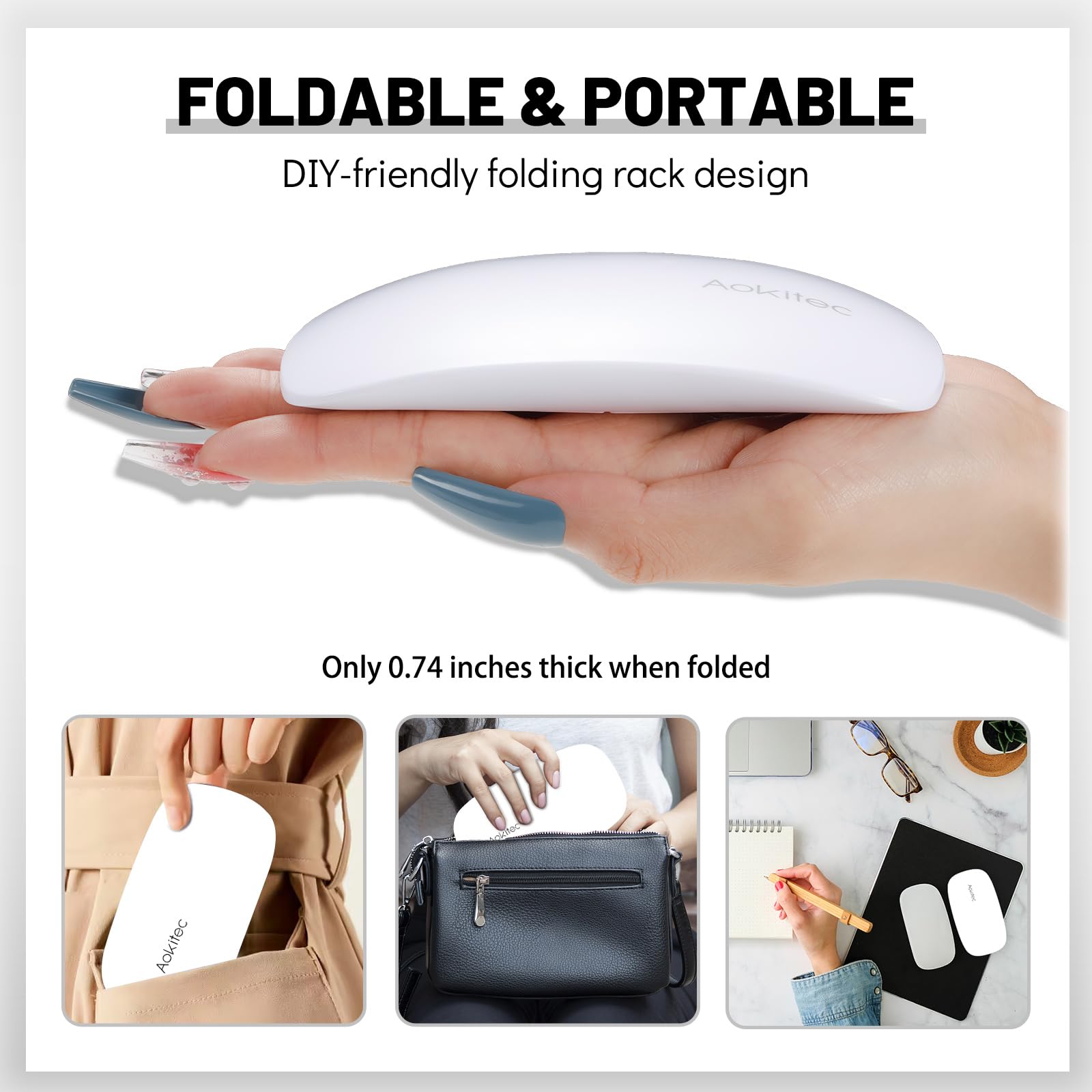 Die Aokitec Mini UV LED Nagellampe ist ein kompakter und tragbarer Nageltrockner zur Haertung von UV- und LED-Gelnagellacken. Sie eignet sich fuer den Einsatz zu Hause, im Buero oder auf Reisen und ist fuer Einsteiger sowie erfahrene Anwender geeignet.