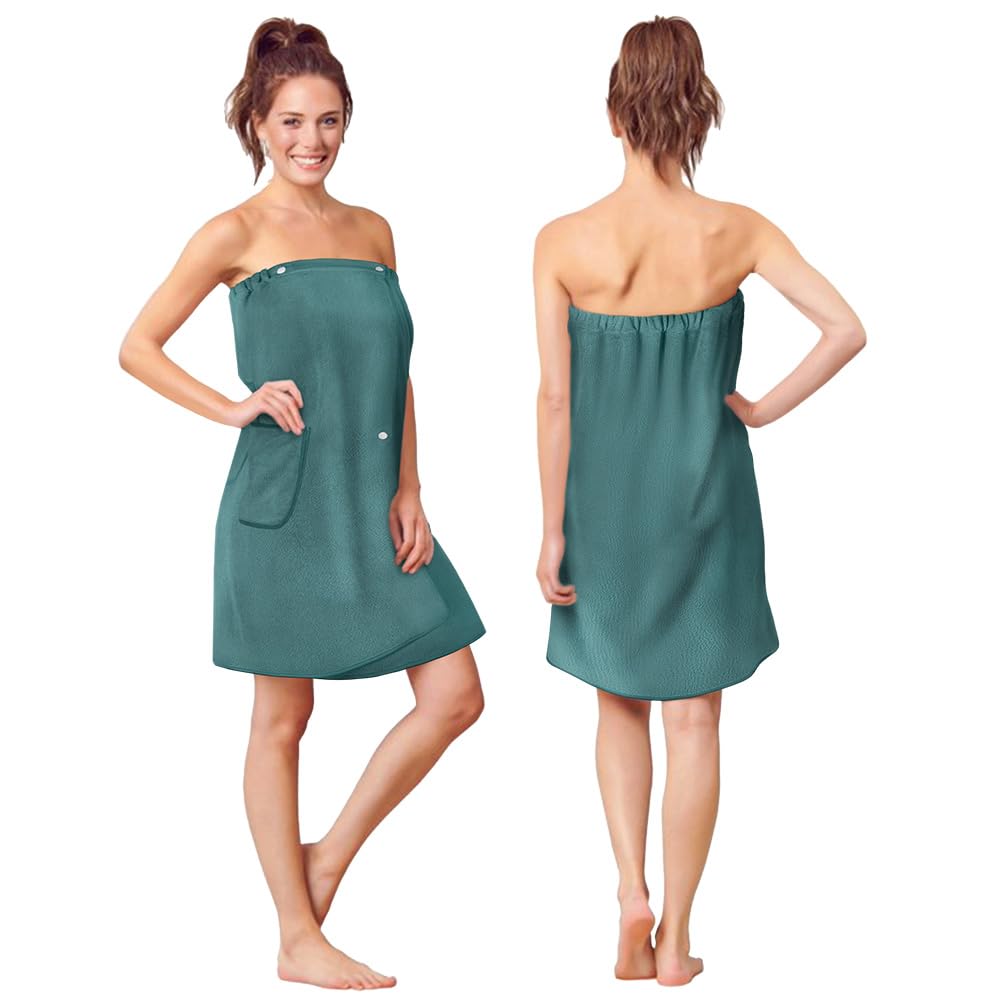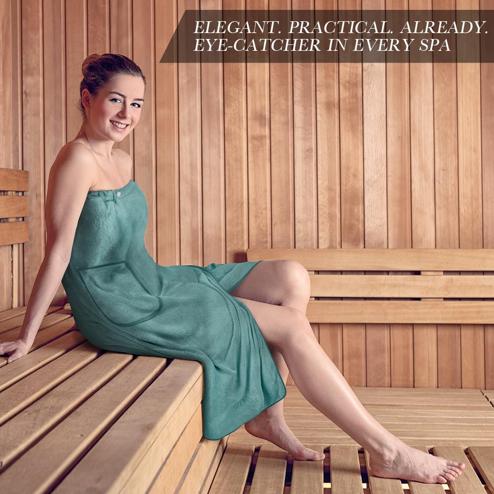 Aomig Saunakilt Damen Sauna Zubehör Spa Saunahandtuch 80*140cm Knopffrottee Gummizug Saunarock Elastische Taschen Saunakleid Grösse Anpassen Saunatuch Hamamtuch Saunakilt Tragbar Badetücher Pfauenblau