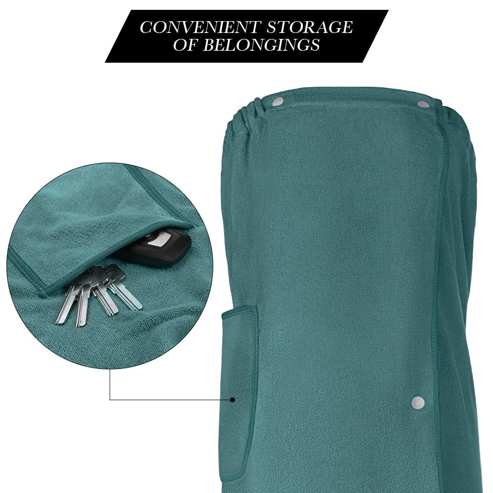 • 【Praktisches Design】 Superelastisches Gummiband, kann sowohl von dicken als auch von dünnen Menschen getragen werden. Knöpfe halten das Handtuch stabil und verhindern, dass es herunterfällt. Das Taschendesign ist super toll. Mit praktischen Knöpfen auf der Rückseite und losen Trägern können Sie die Breite des Handtuchs einfach anpassen und so Ihren individuellen Komfort und die perfekte Passform gewährleisten. Sie können mehr Dinge in Ihre Taschen packen, was das Reisen erleichtert.