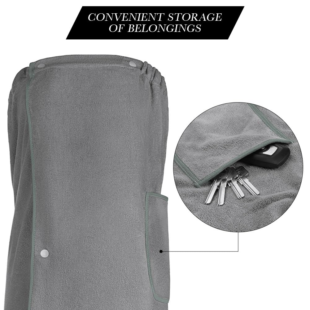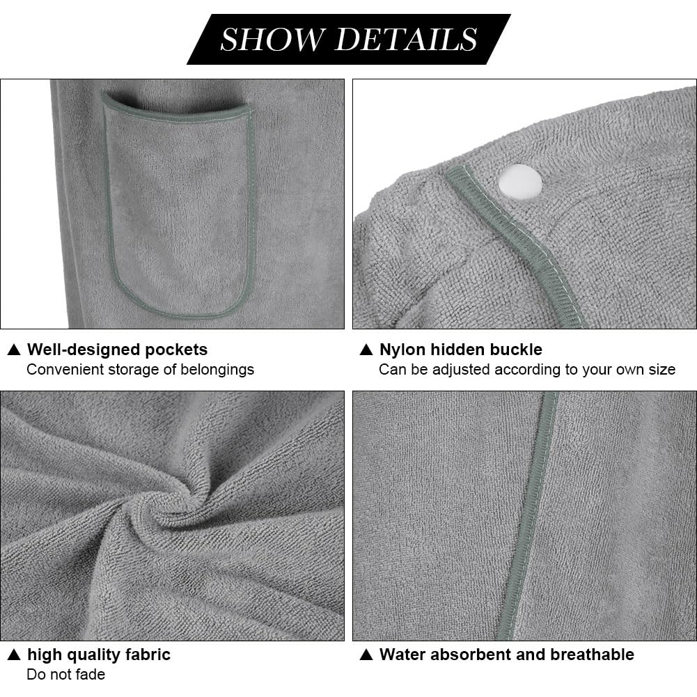 • 【Praktisches Design】 Superelastisches Gummiband, kann sowohl von dicken als auch von dünnen Menschen getragen werden. Knöpfe halten das Handtuch stabil und verhindern, dass es herunterfällt. Das Taschendesign ist super toll. Mit praktischen Knöpfen auf der Rückseite und losen Trägern können Sie die Breite des Handtuchs einfach anpassen und so Ihren individuellen Komfort und die perfekte Passform gewährleisten. Sie können mehr Dinge in Ihre Taschen packen, was das Reisen erleichtert.