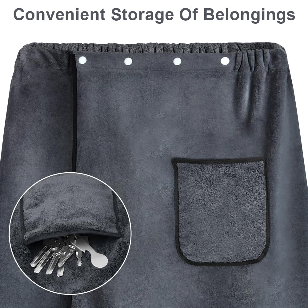 Aomig Saunakilt Herren, Grau, Elastisch, Verstellbare Grösse, Schnapp-Badetuch Kilt Herren, Grosses, Schnell Trocknendes Saunatuch Hamamtuch Saunahandtuch für Fitnessstudio, Dusche, Sauna, Spa, Strand