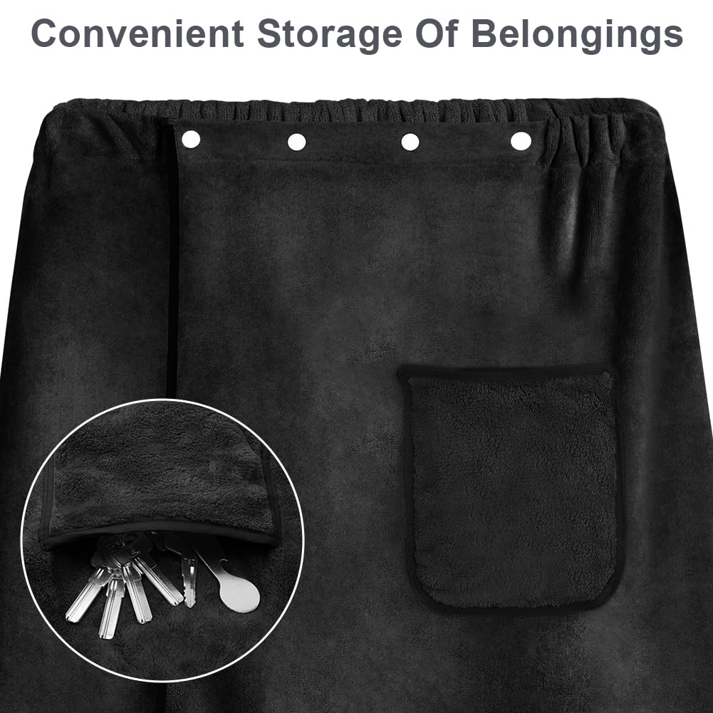 Aomig Saunakilt Herren Elastisch Verdicktes Badetuch Verstellbare Größe Schnapp-Badetuch Kilt Herren Großes Schnell Trocknendes Saunatuch für Fitnessstudio Dusche Sauna Spa Strand (Schwarz, 80*150 cm)