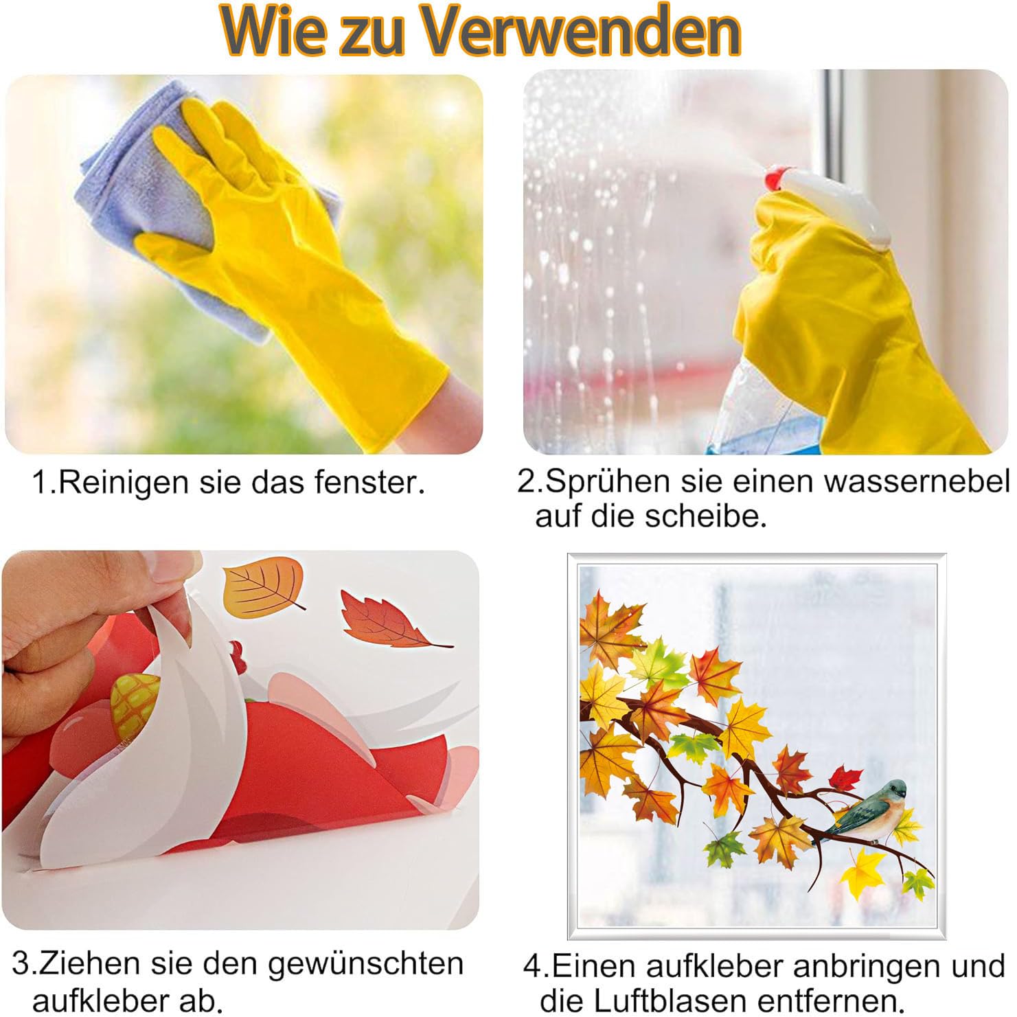 Herbstdeko Fenster Aufkleber Ohne Kleber, Ahornblätter Kürbis Kleintiere Fensterdeko Herbst für Kinderzimmer Cafe, Style D