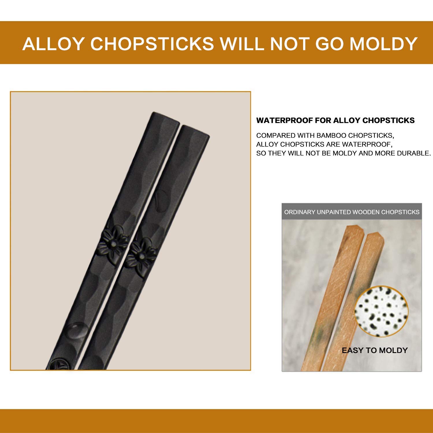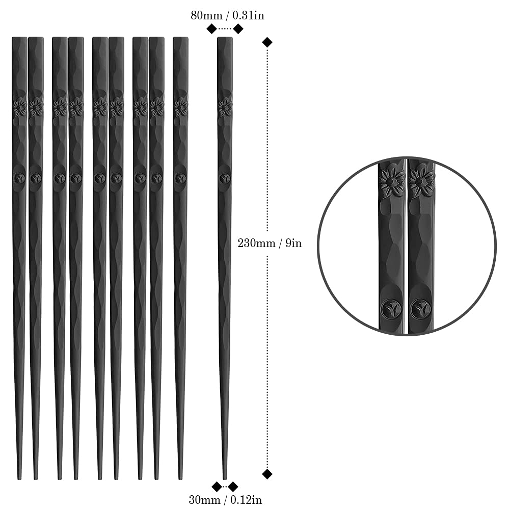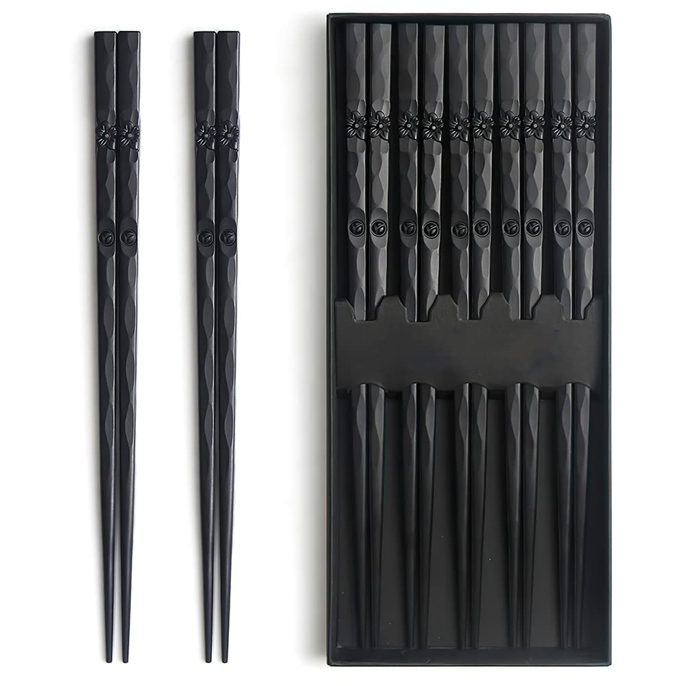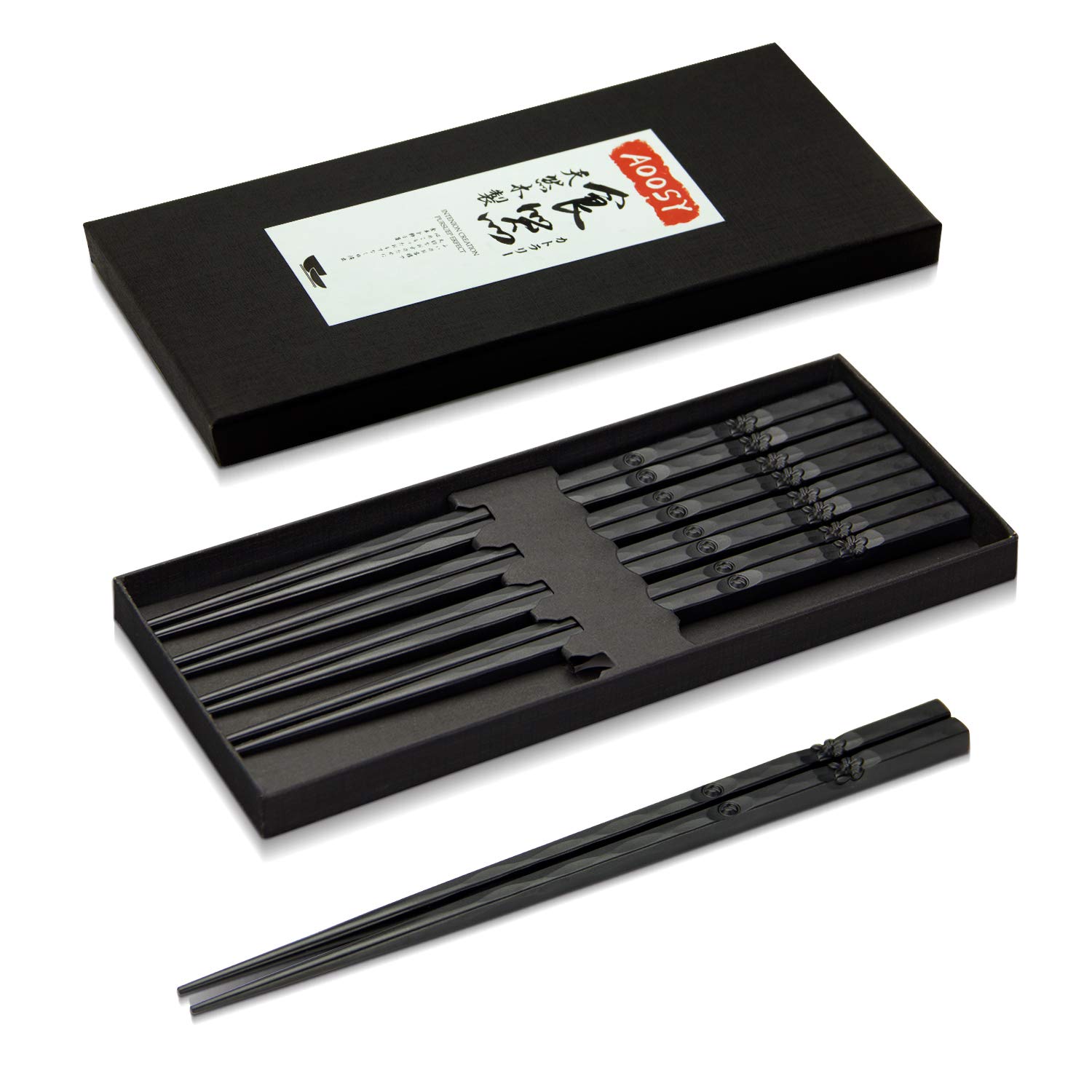 AOOSY 5 Paar Essstäbchen aus Fiberglas, spülmaschinenfest, japanischer Stil, schönes Design, rutschfeste schwarze Sushi-Essstäbchen, schwarze Legierung, mit Geschenkbox
