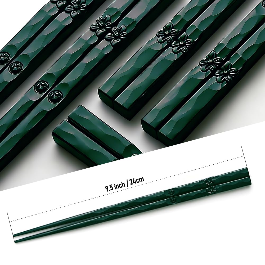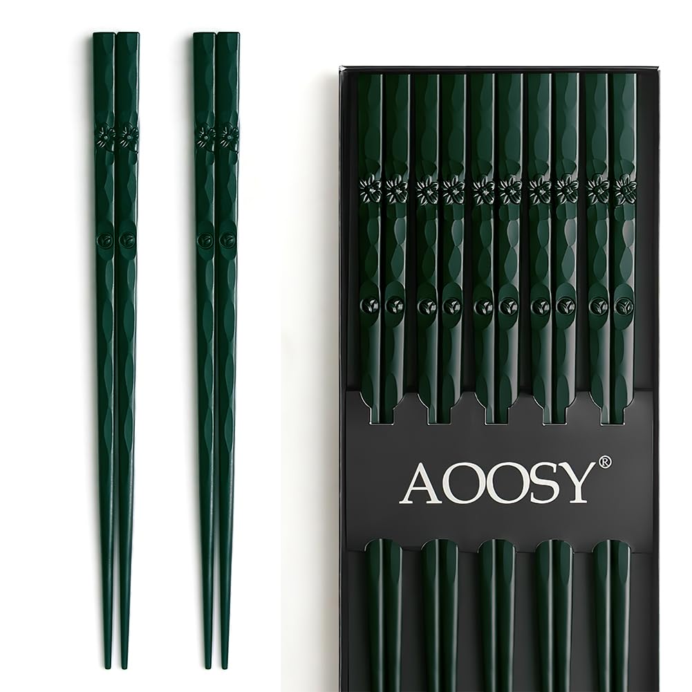 AOOSY Essstäbchen aus Fiberglas, japanischer Stil, schönes Design, rutschfest, wiederverwendbar, mit Geschenkbox, 5 Paar