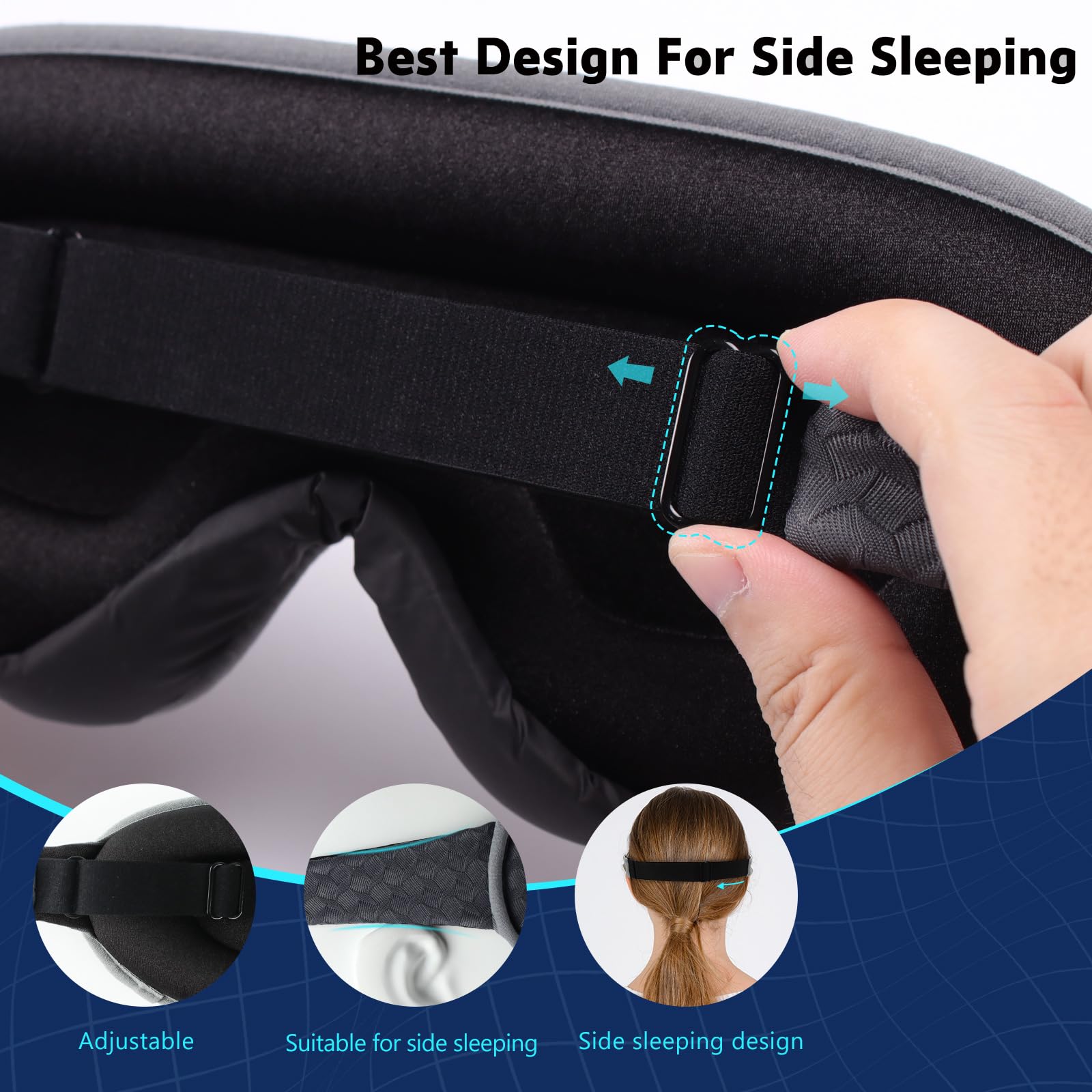 • Spezielles Elastikband für Seitenschläfer - Das Design ohne seitliche Schnallen vermeidet Druck auf die Schläfen und ist verstellbar für eine ideale Passform bei jeder Kopfform. Diese Schlafmaske bleibt die ganze Nacht bequem, ohne zu verrutschen oder zu eng zu werden.