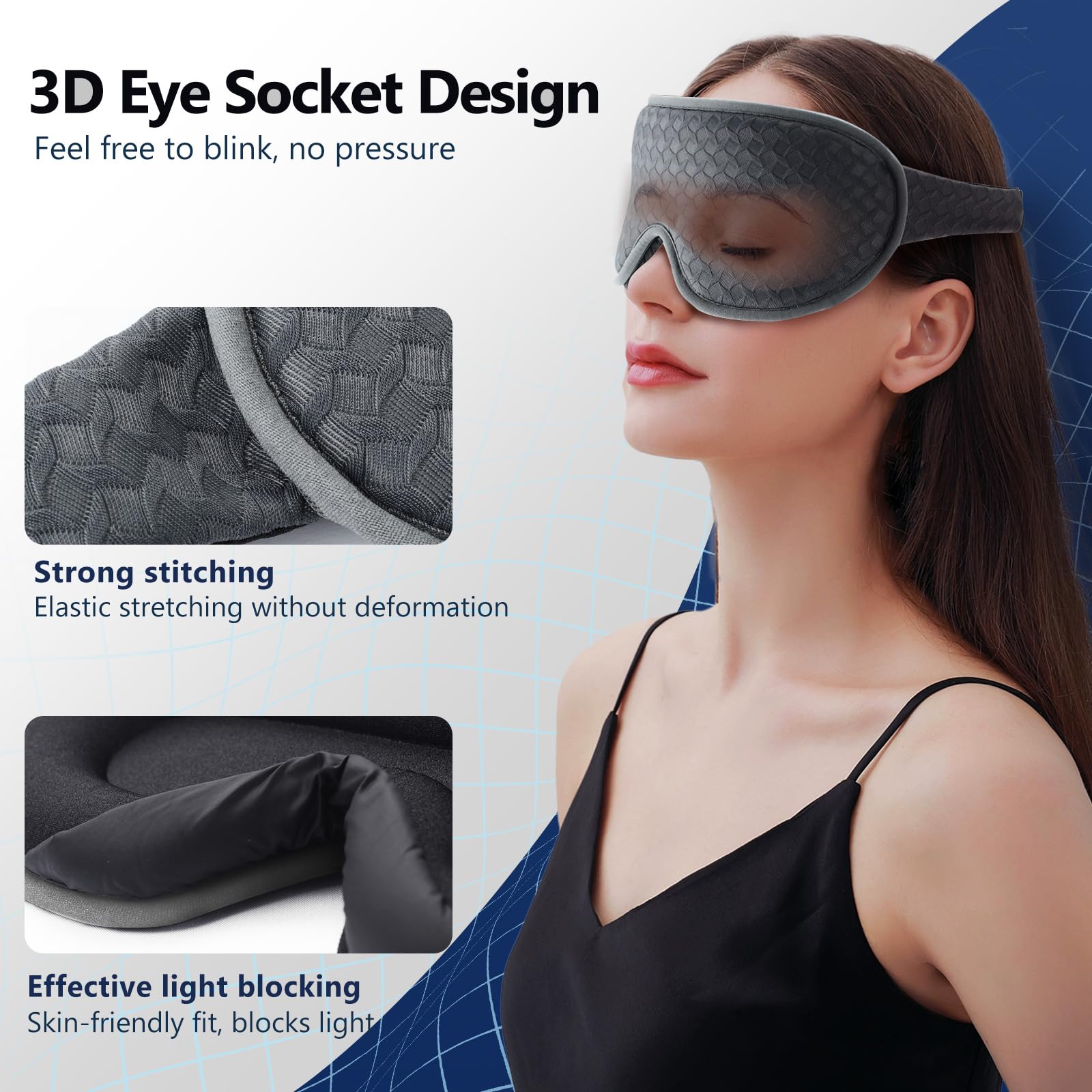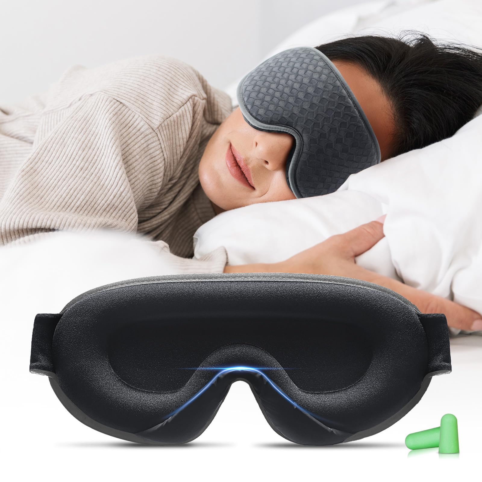 Aosun Schlafmaske für Frauen und Herren, 2024 Upgrade Speziell für Seitenschläfer Optimiertes und Verbessertes Gummiband, 3D Schlafbrille, 100% lichtblockierende Augenmaske mit Ohrstöpseln, Grau