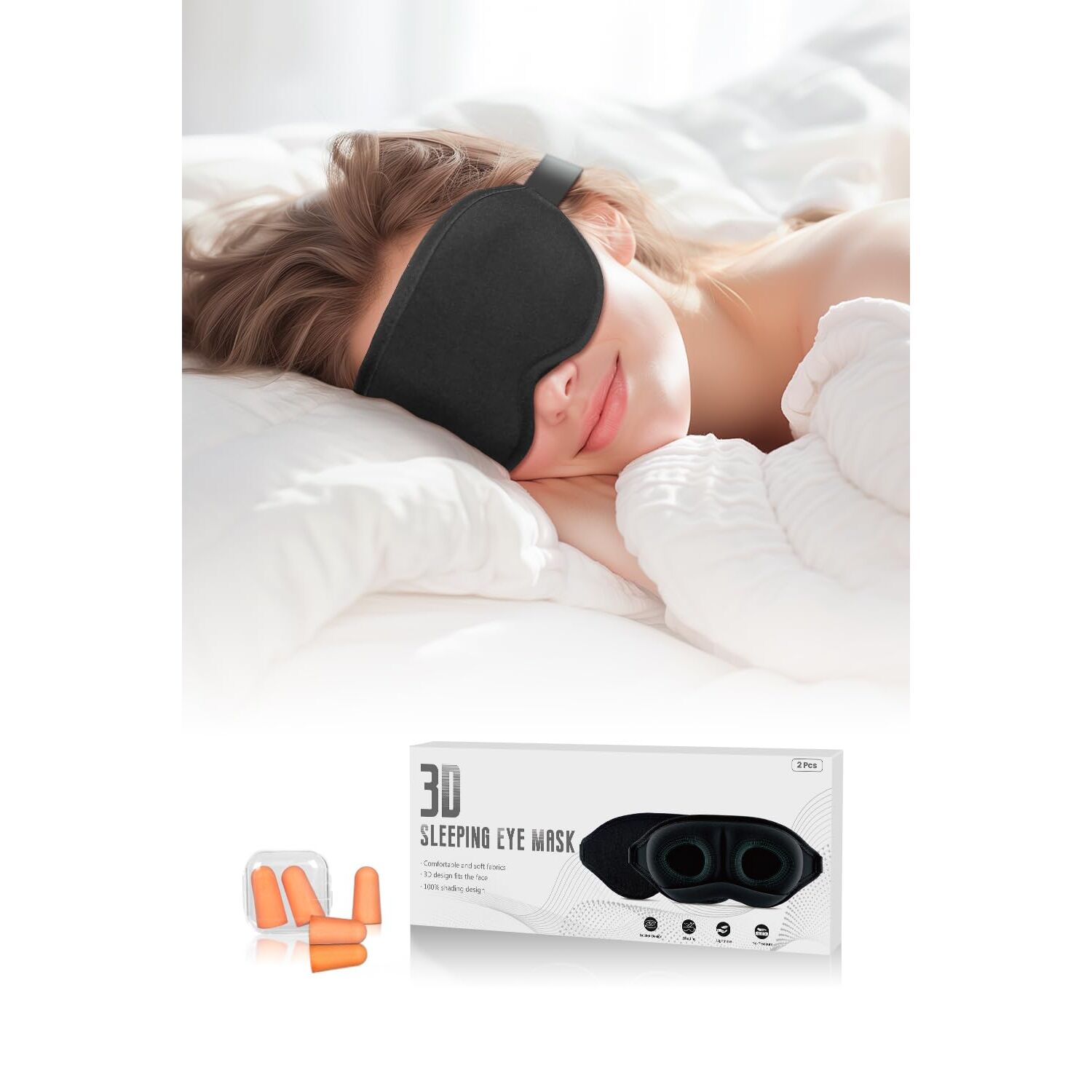 Aosun Schlafmaske für Seitenschläfer, 2er-Pack, Professional 3D Schlafbrille Schlafmasken für Frauen & Herren, 100% Lichtblockierende Augenmaske mit Verstellbarem Gummiband & Ohrstöpsel für Reisen