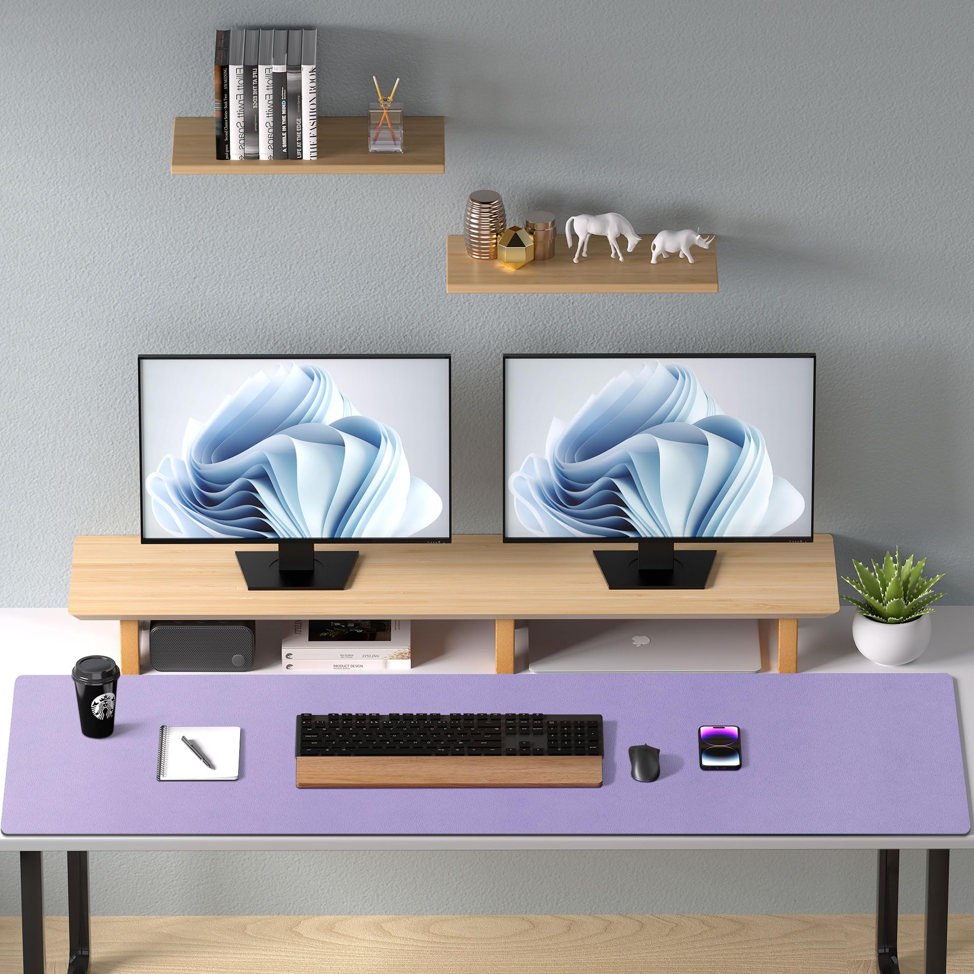 Aothia Schreibtischunterlage,Mauspad mit Leder und Rutchfeste Wildleder,Multifunktionales Office Mousepad Laptop Schreibunterlage,Tisch-Schutz Unterlage für Büro/Home(91x43cm,Lavendel)