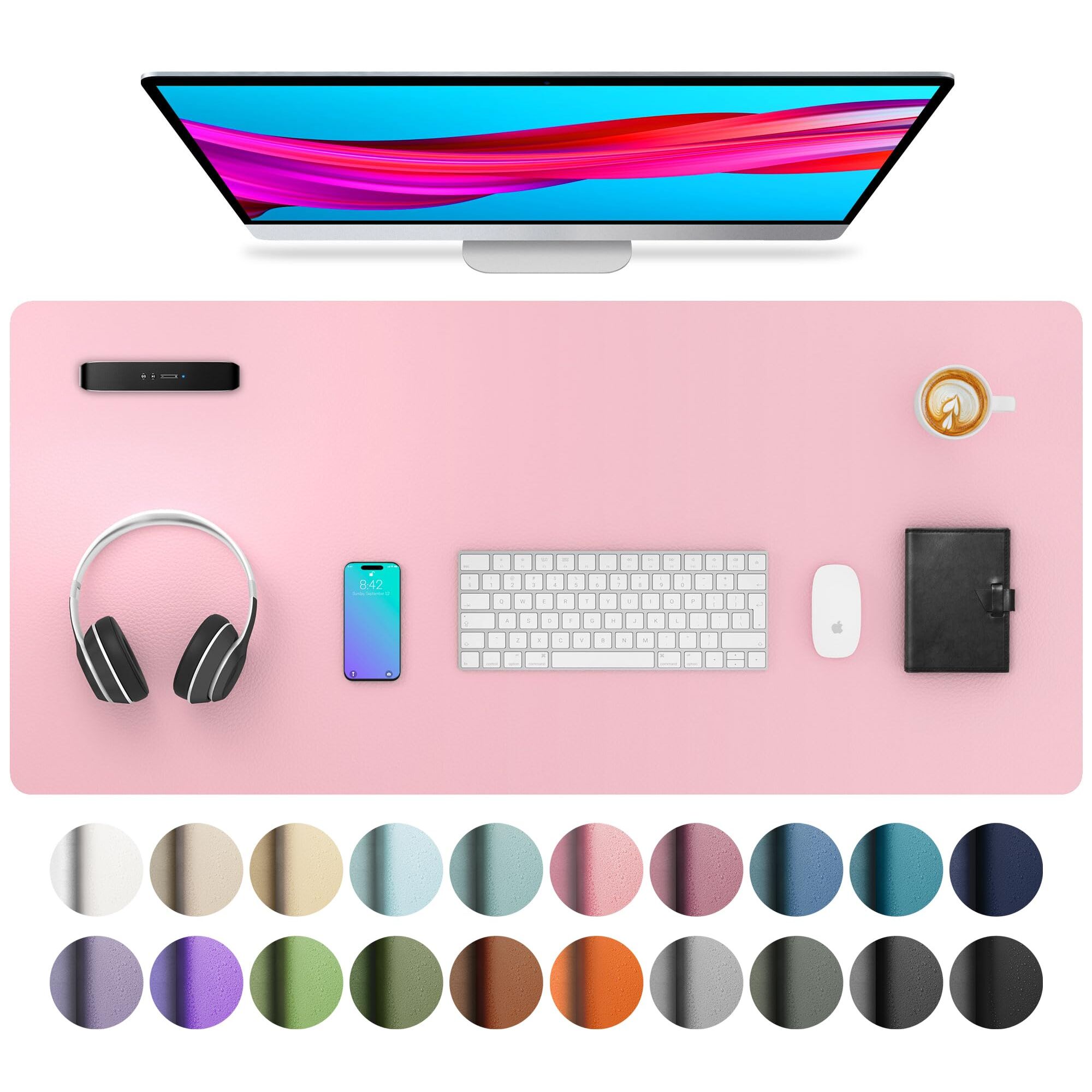 Aothia schreibtischunterlage leder,schreibtisch unterlagenmatte,Mauspad,Rutschfester Schreibtischschutz,wasserdichter Schreibtisch für Büro und Zuhause(91cm x 43cm,Fee Rosa)