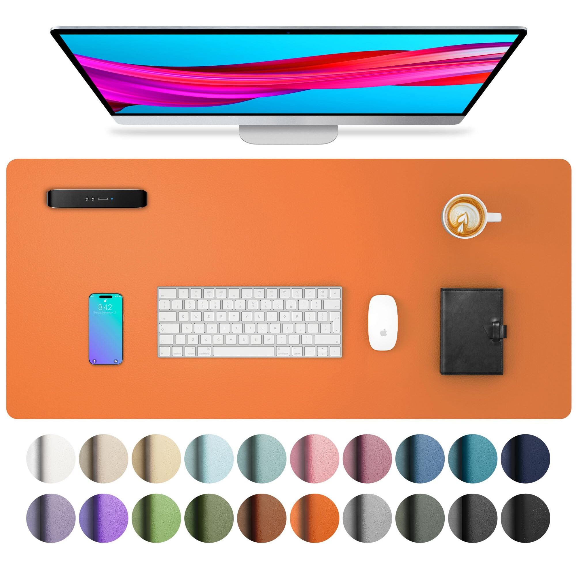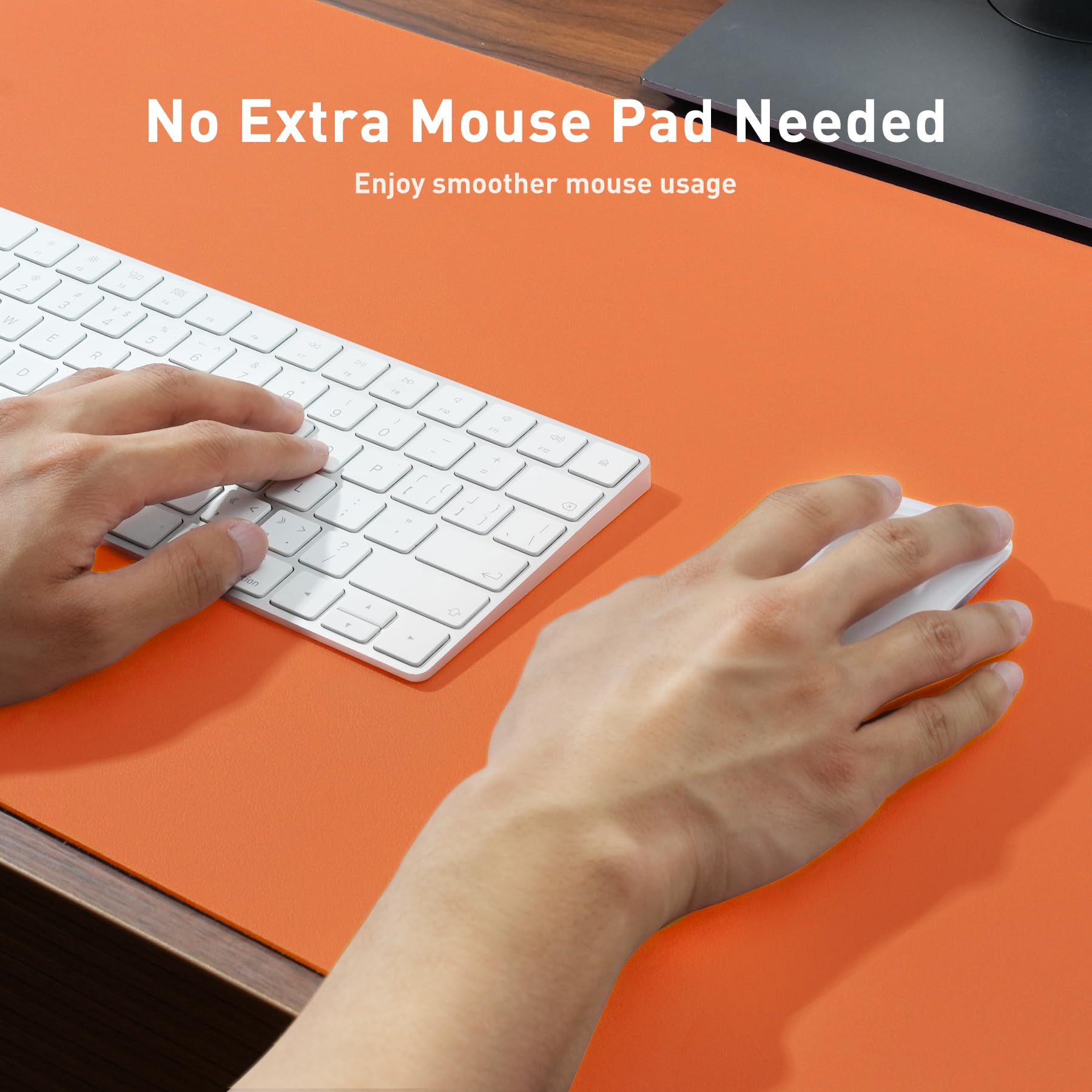 Aothia Schreibtischunterlage,Mauspad mit Leder und Rutchfeste Wildleder,Multifunktionales Office Mousepad Laptop Schreibunterlage,Tisch-Schutz Unterlage für Büro/Home-Office(80x40cm,Hermes Orange)