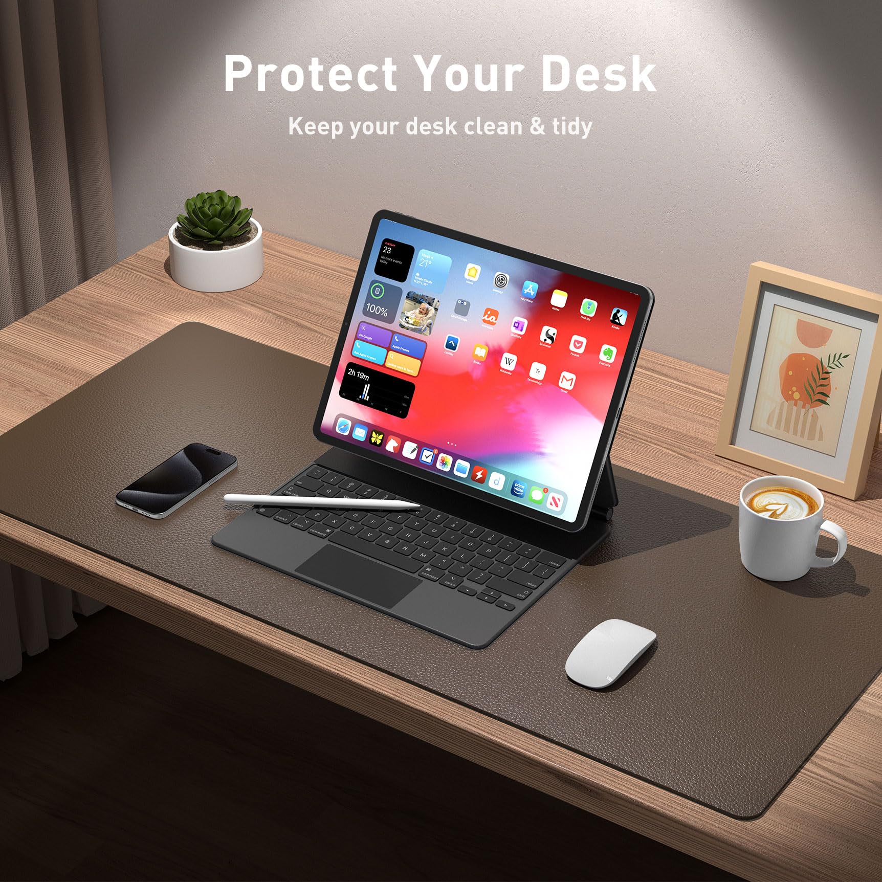Aothia Schreibtischunterlage,PU-Leder-Schreibtischmatte,Mauspad,Rutschfester Schreibtischschutz,wasserdichter Schreibtisch-Schreibblock für Büro und Zuhause (60x35cm,Kaffee)