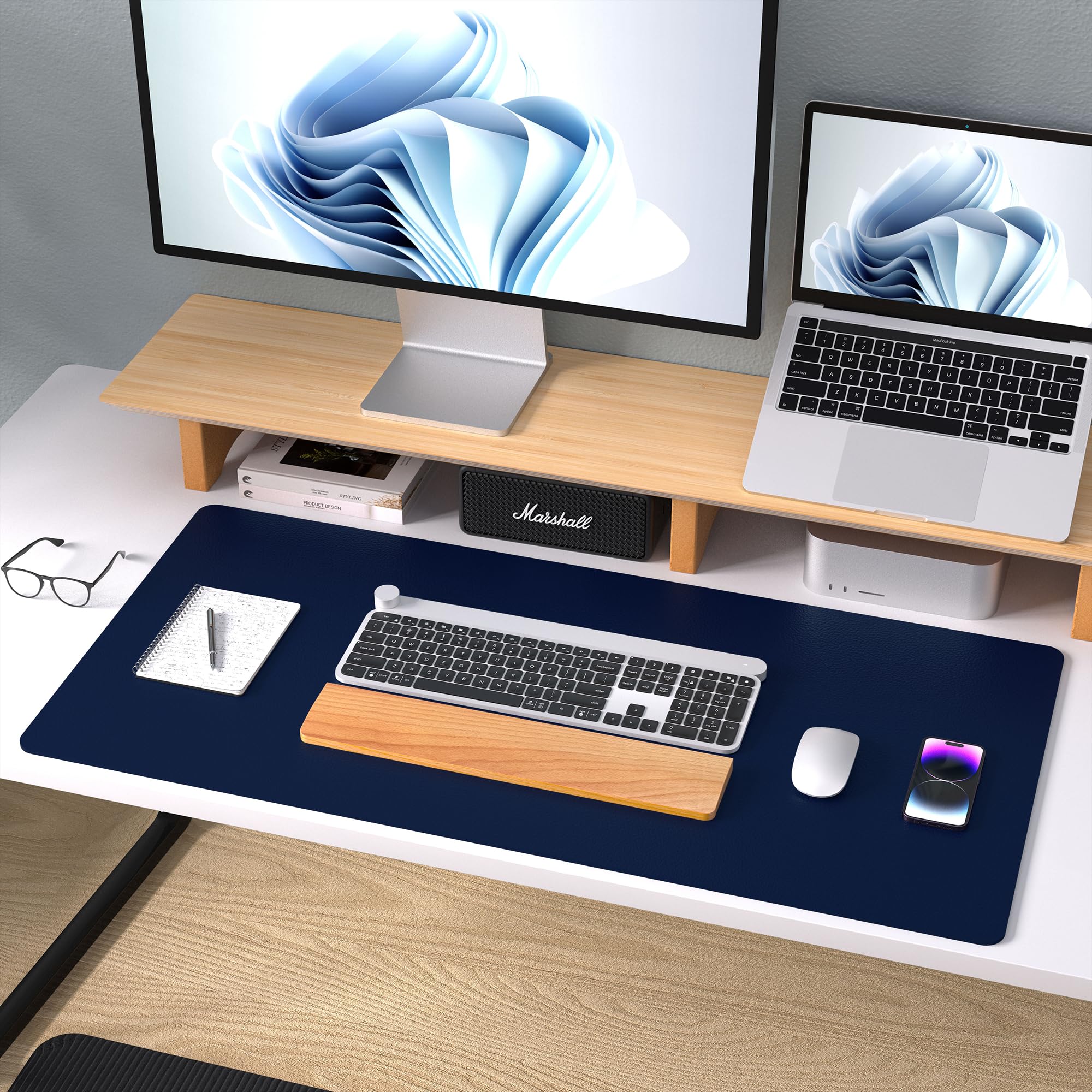 Aothia Schreibtischunterlage,Mauspad mit Leder und Rutchfeste Wildleder,Multifunktionales Office Mousepad Laptop Schreibunterlage,Tisch-Schutz Unterlage für Büro/Home(91cmx43cm,Dunkelblau)