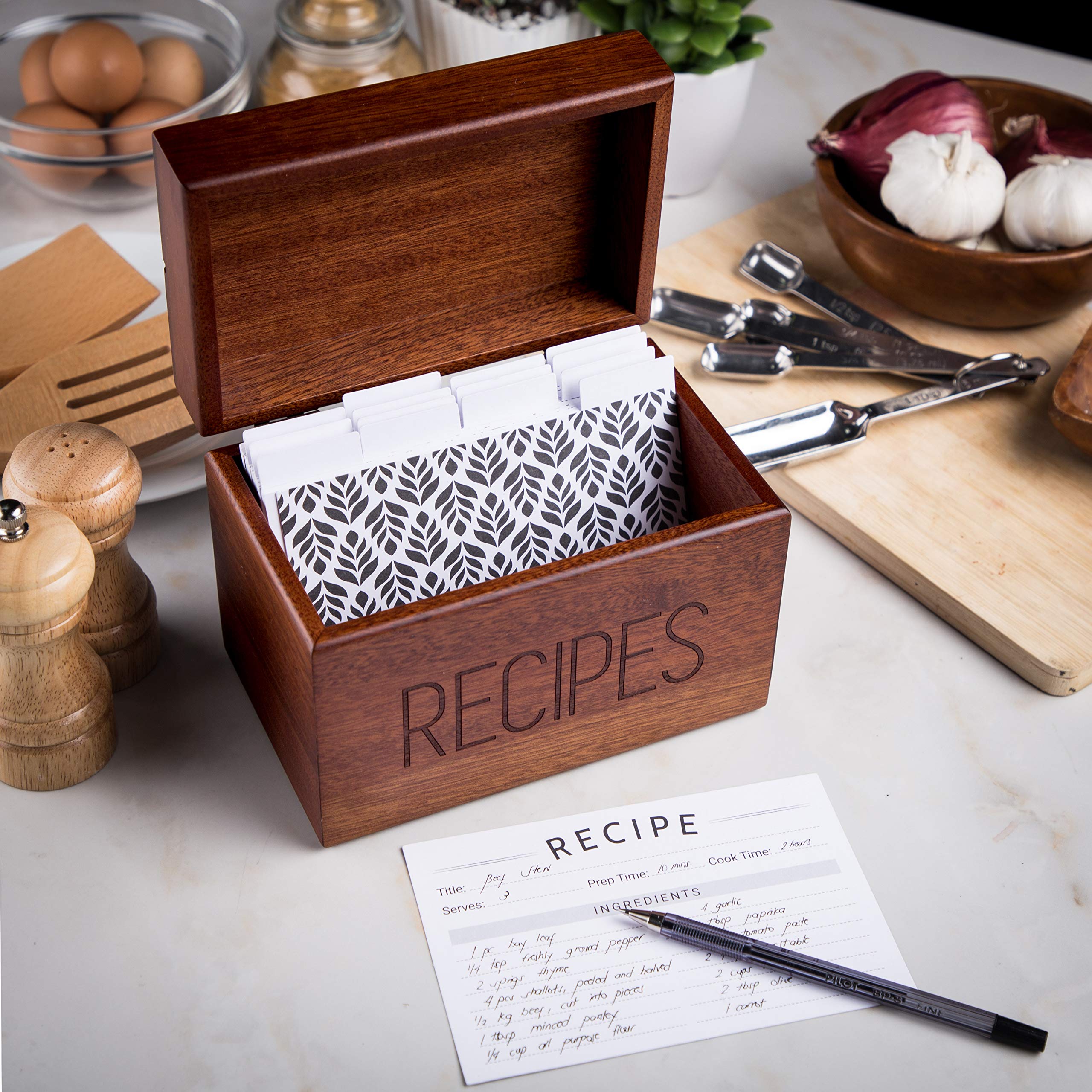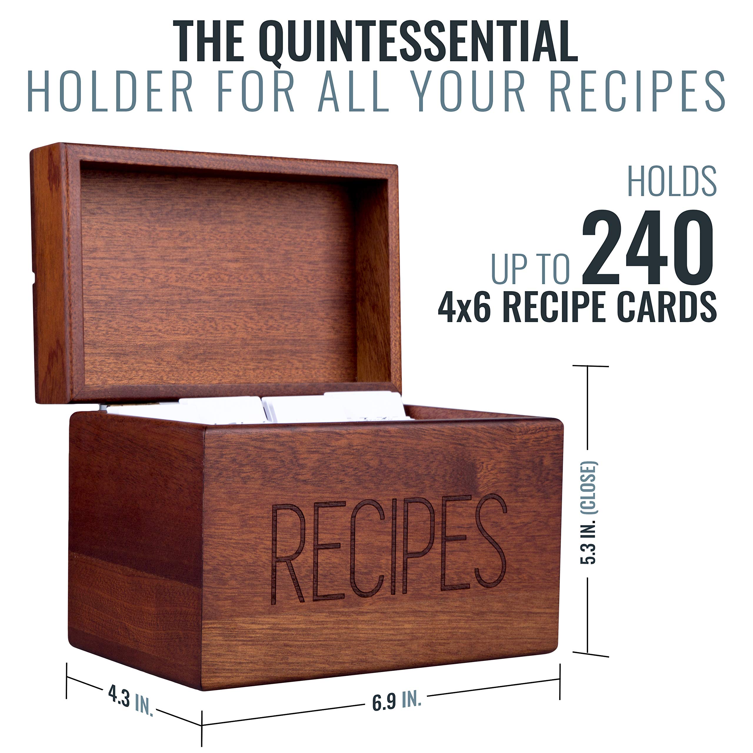 Apace Living Rezeptbox Holz mit blanko Rezeptkarten und Trennkarten – Sapeli Rezeptkiste für die Aufbewahrung Ihrer Rezepte – Exklusiver Rezeptordner Rezeptkasten für bis zu 240 Karten