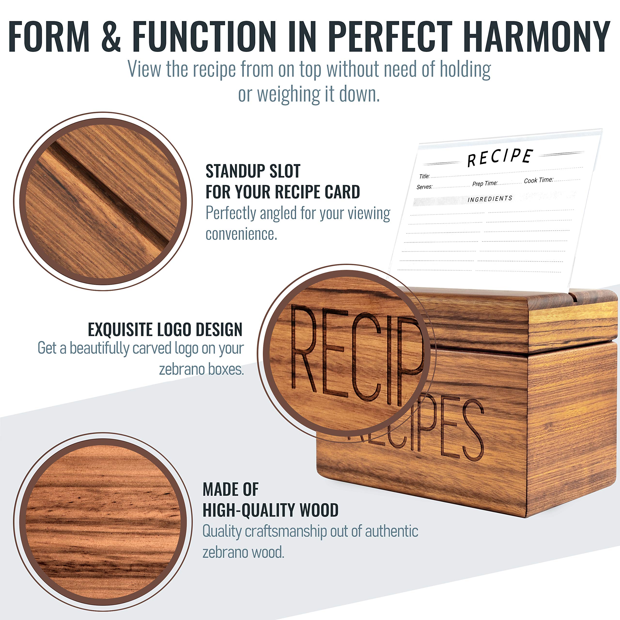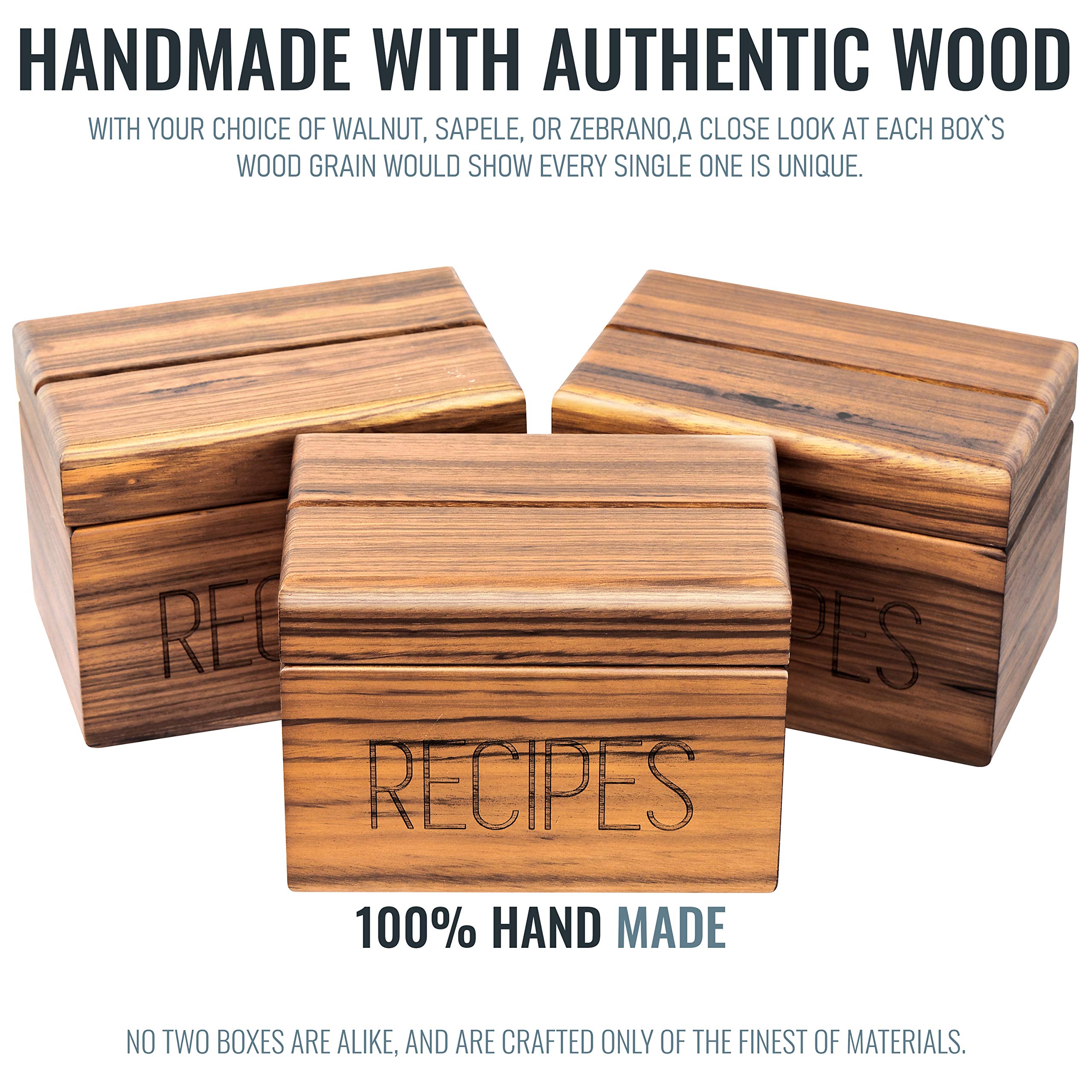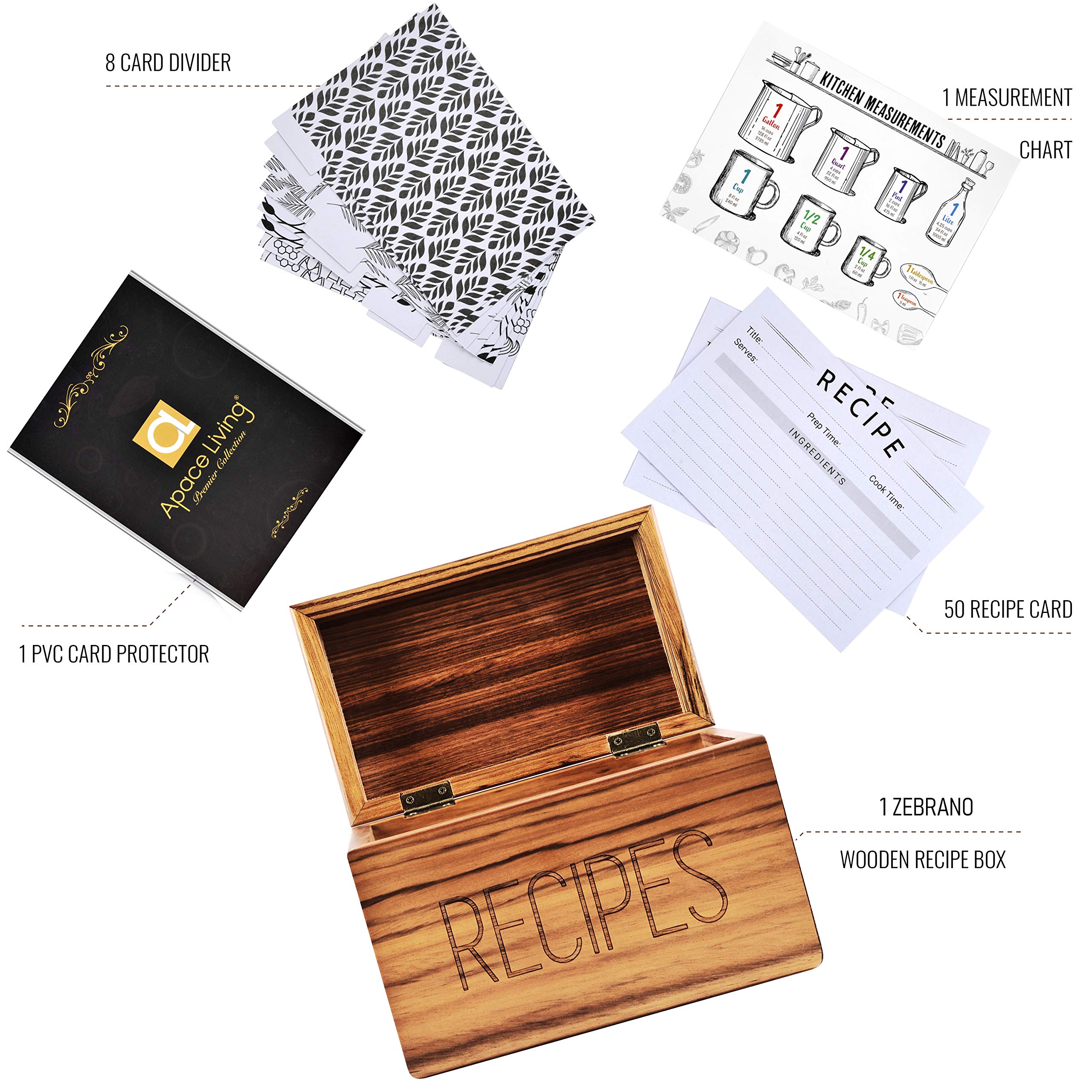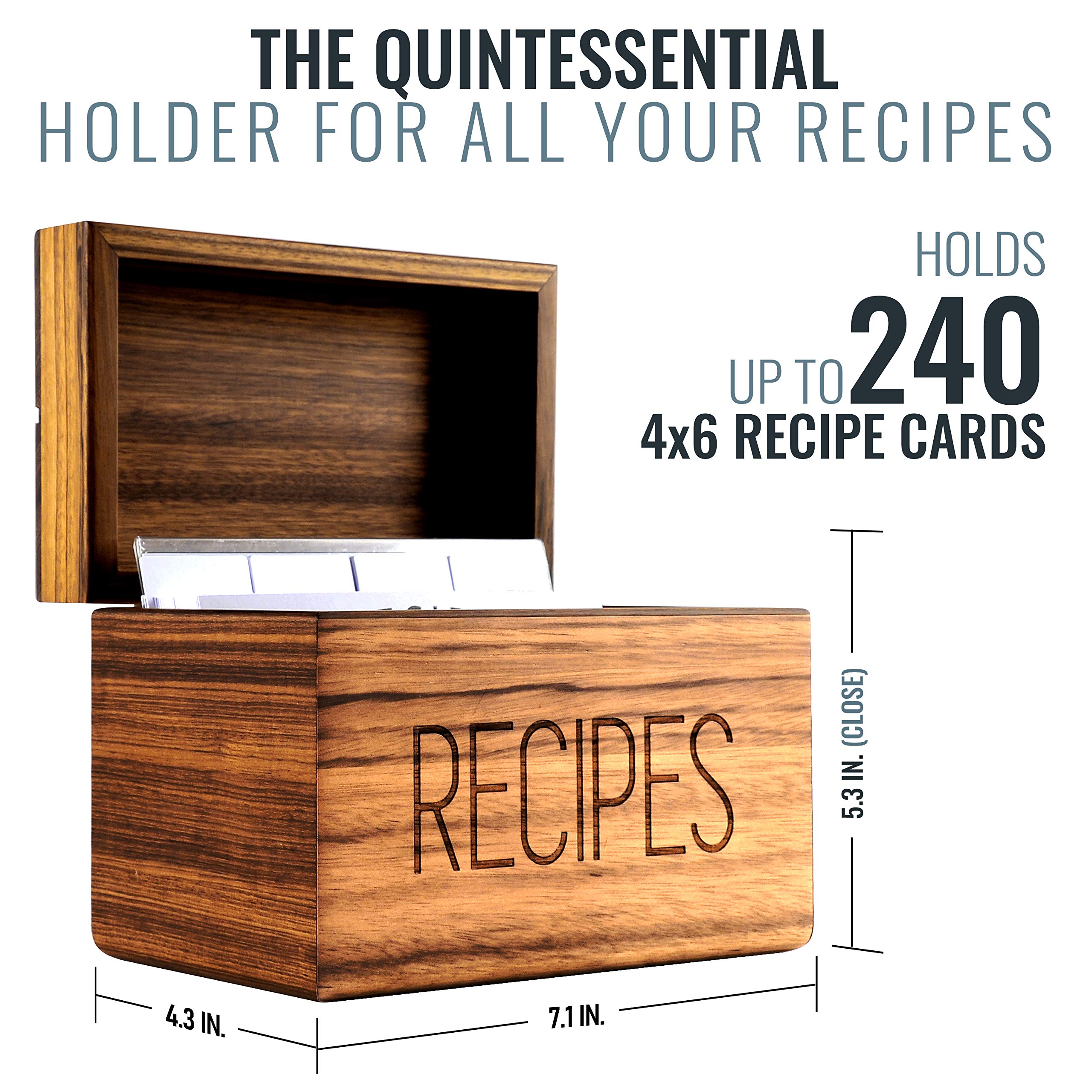 Apace Living Rezeptbox mit Karten und Trennwänden von Apace - Vintage Style Holz 4x6 Rezepthalter Kartenbox - Exklusiv Premier Collection - Für 240 Karten (Zebrano)