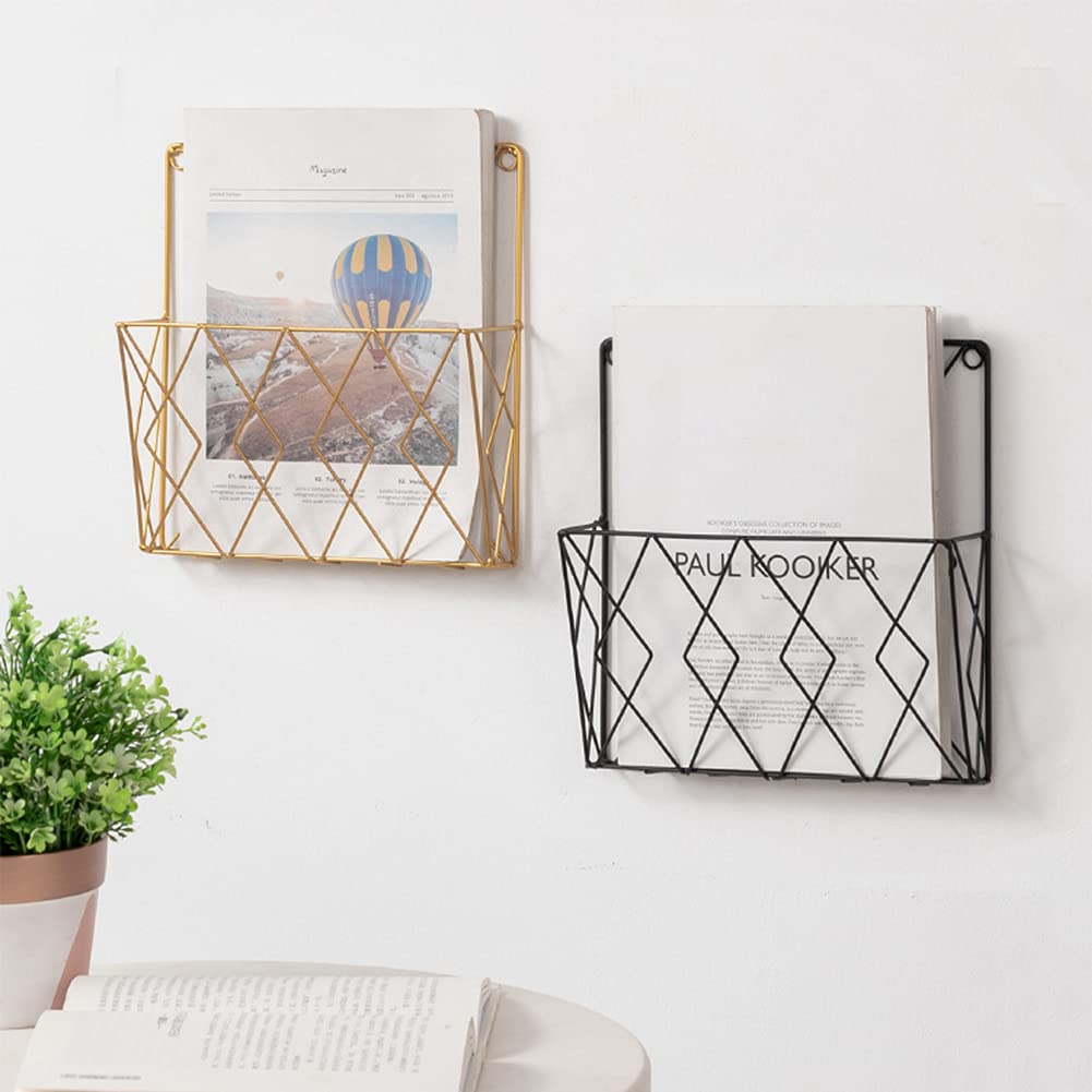 Apofly Wall Mounted Magazine Rack-Wand Zeitungsständer hängend Magazinhalter Zeitung Speicher-Organisator Metalldraht-Dateien Regal Dekoration Schwarz