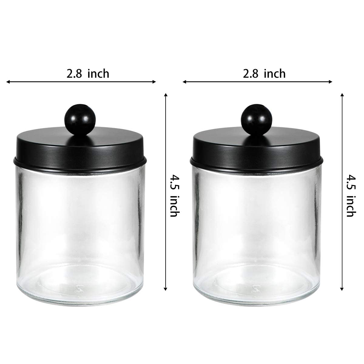 Apothekergläser Badezimmer-Aufbewahrungs-Organizer – niedlicher Qtip Spenderhalter, Kosmetikbehälter, Glas mit Deckel für Wattestäbchen, rund, Badesalz, Make-up-Schwämme, Haar-Accessoires, Schwarz, 2