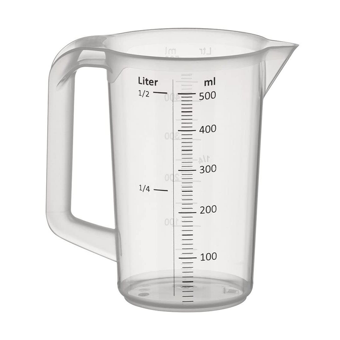 APS Messbecher 0,5 Liter, Ø 9,5 x H: 14 cm, Kunststoffbecher mit geprägter Massskalierung aussen, geschlossener Griff, ml-Einteilung, spülmaschinengeeignet