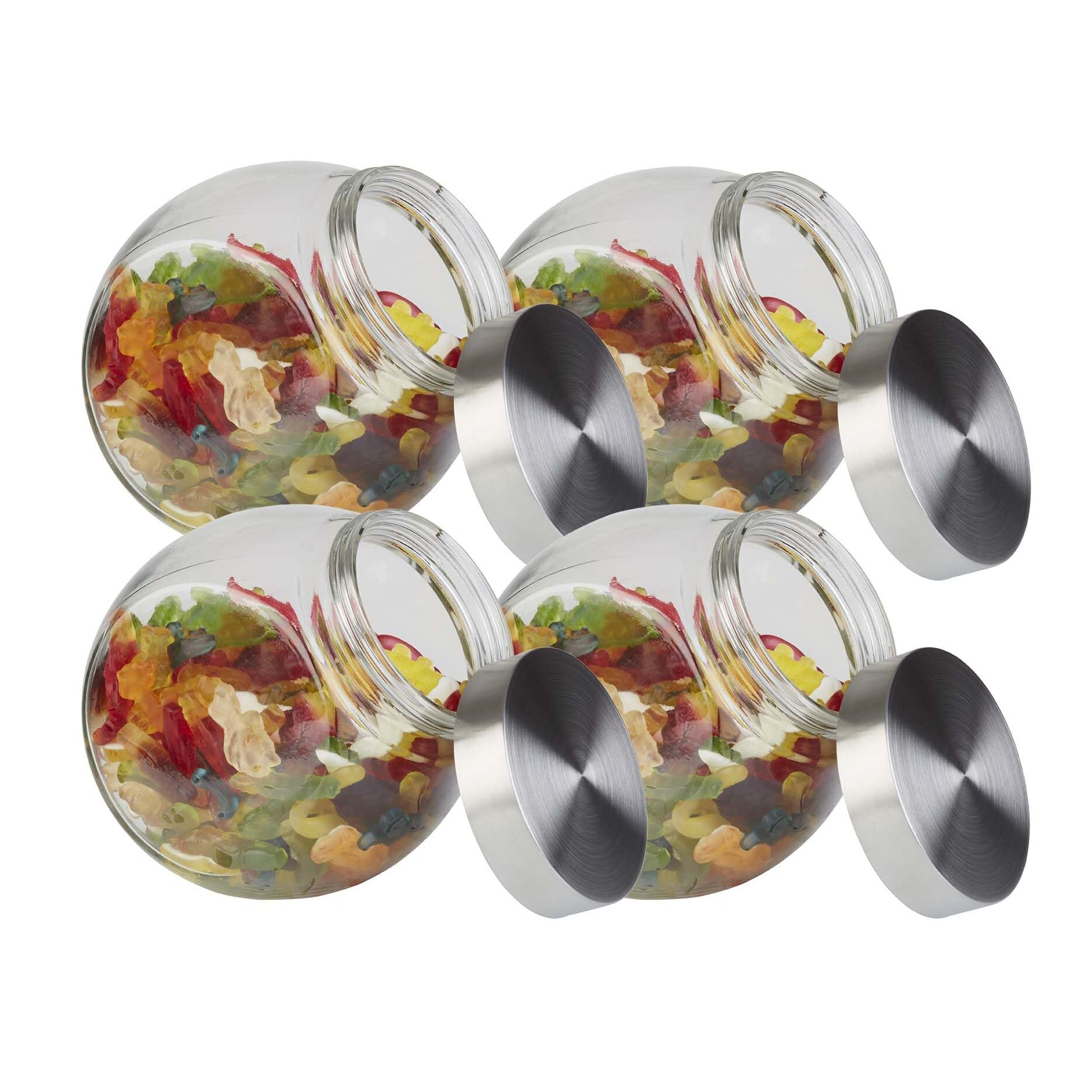 APS Vorratsglas 4er Set - Behälter mit Premium Glaskugel-Optik und Schraubdeckel aus rostfreiem Edelstahl - Aromadichte durch die hochwertigen Schraubdeckel