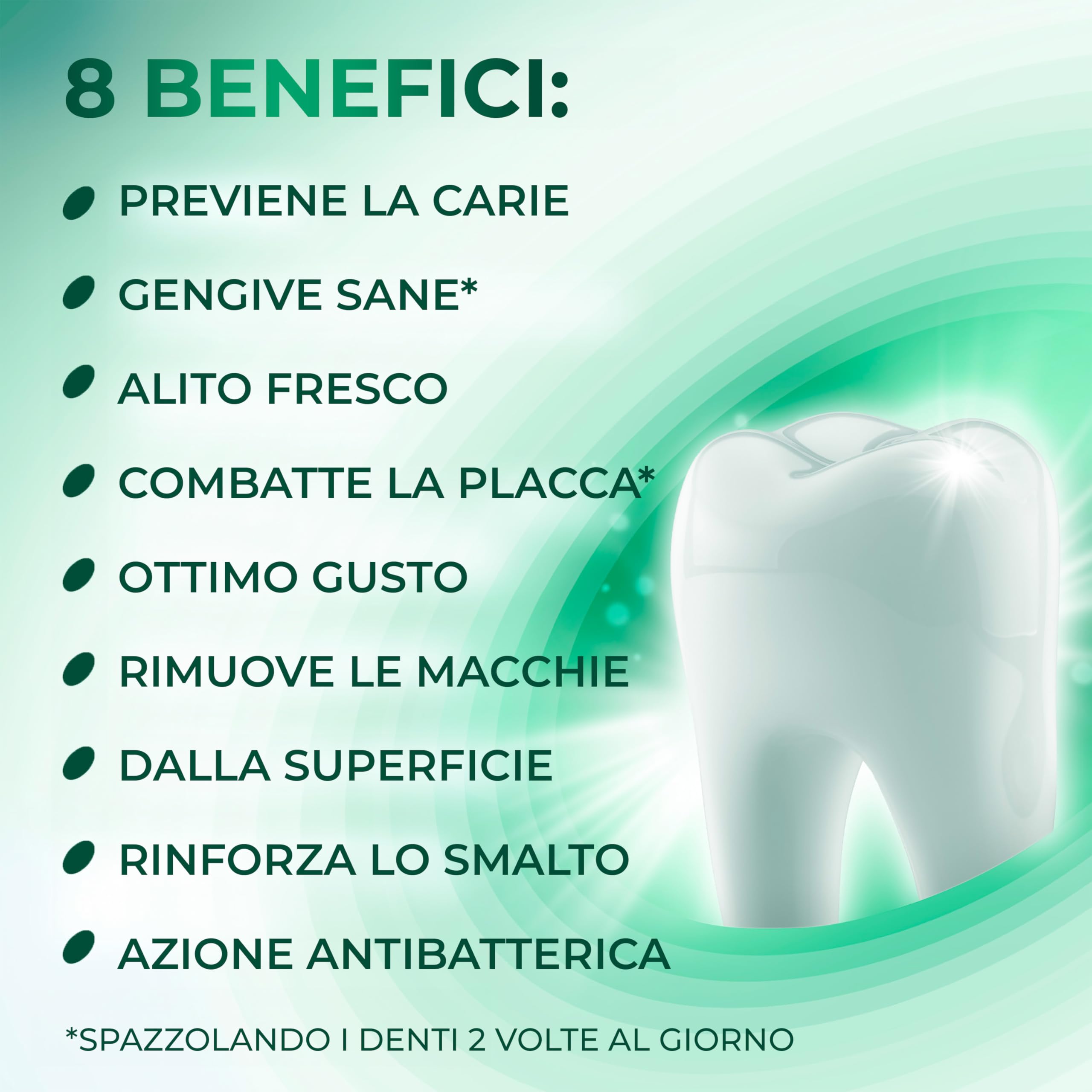 • Seine 8 wichtigsten Wirkungen bieten Schutz für die ganze Familie in einer einzigen Zahnpasta