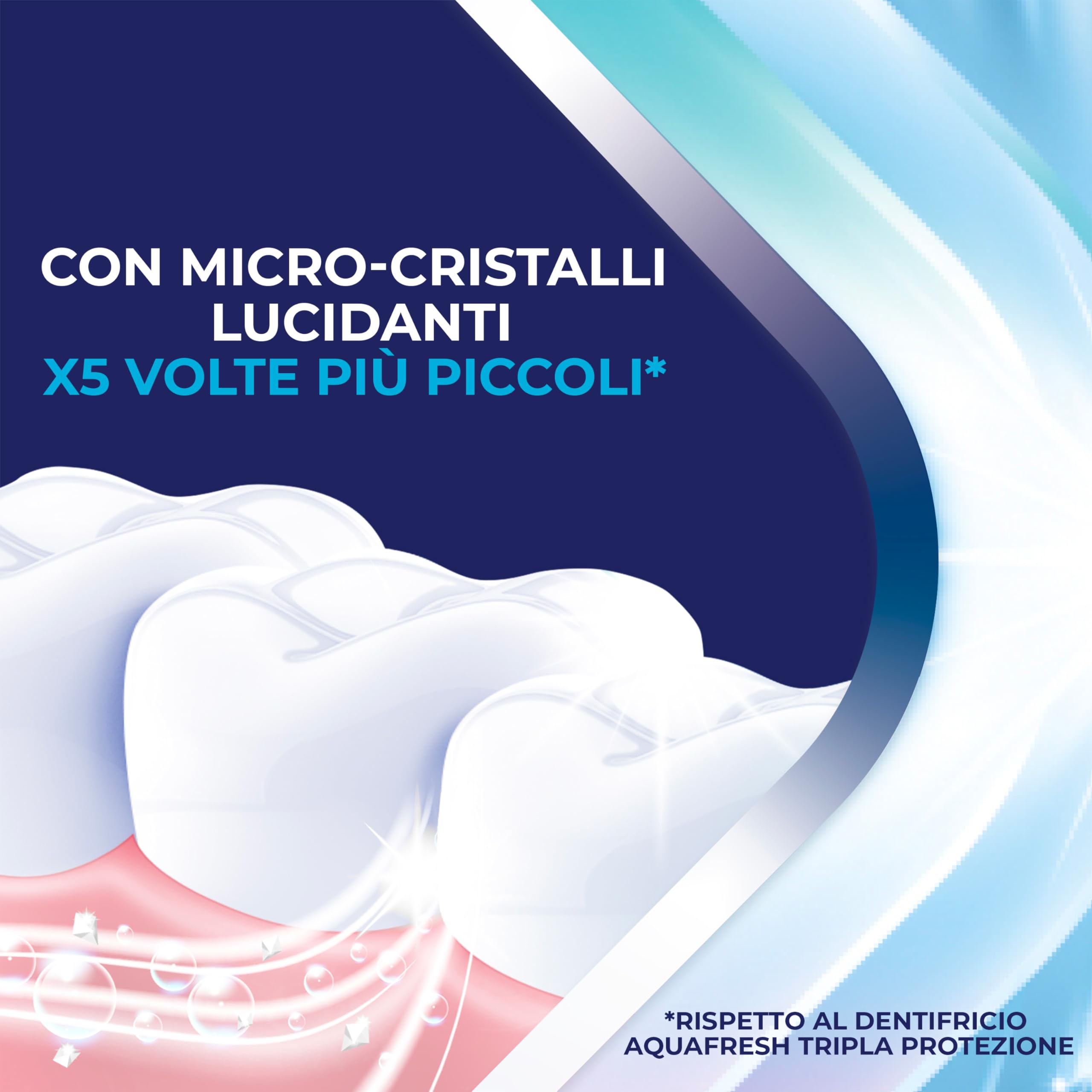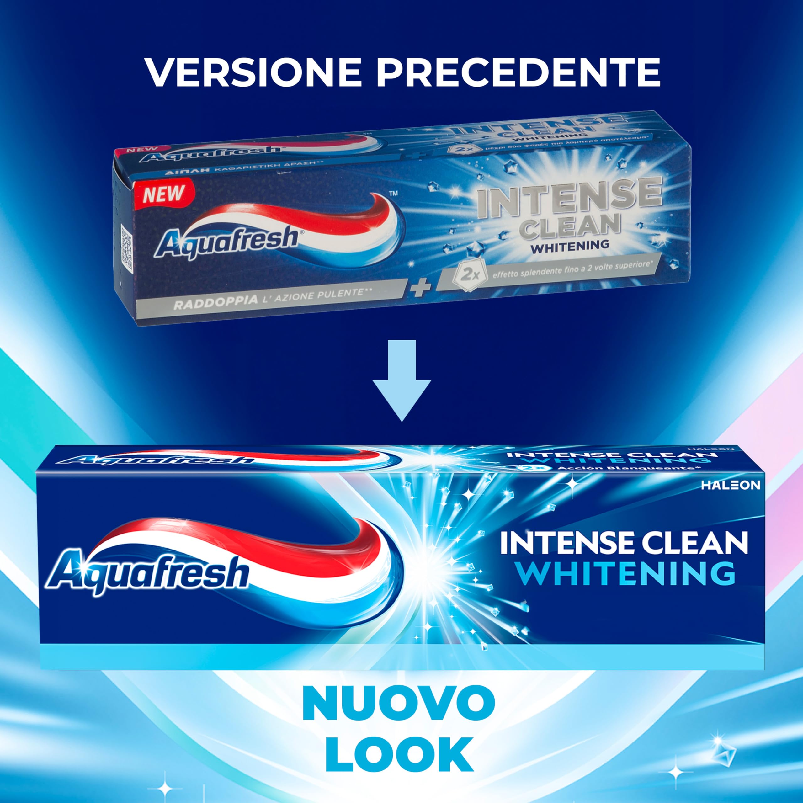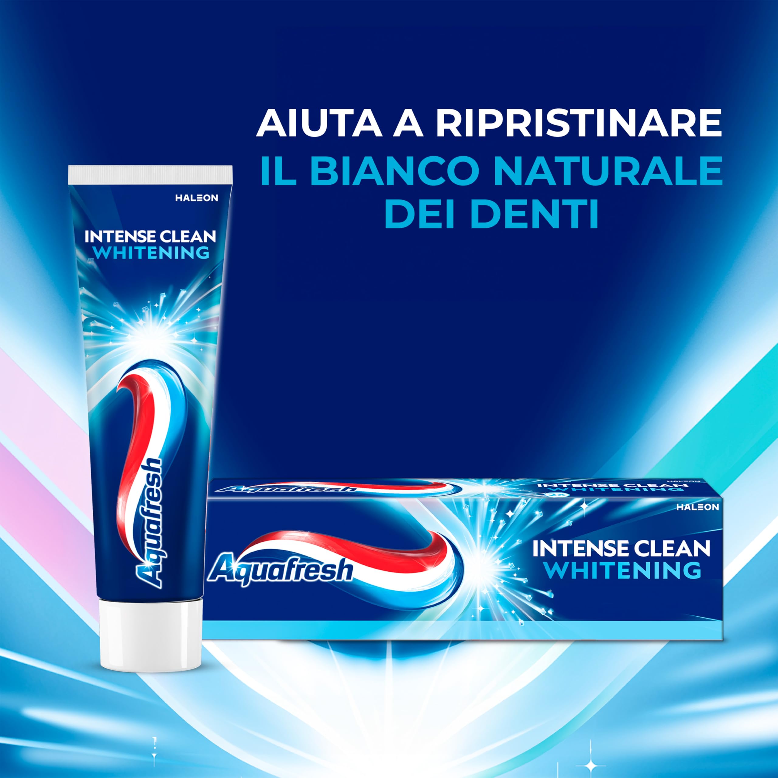 Beschreibung: Die Aquafresh Intense Clean Whitening Zahnpasta reinigt tief und hilft, das natürliche Weiss der Zähne wiederherzustellen, indem oberflächliche Flecken entfernt werden. Dank seiner Formel mit 5 x kleineren Mikrokristallen bietet es eine überlegene Reinigung* und verleiht einen bis zu 2-mal höheren Glanzeffekt*. *Im Vergleich zu Aquafresh Dreifach-Schutz Zahnpasta Wir empfehlen die Verwendung zweimal täglich. Fluor-Zahn. Anleitung: Befolgen Sie immer die Angaben auf der Verpackung. Putzen Sie Ihre Zähne zweimal täglich bis zu drei; minimieren Sie das Verschlucken und spucken. Warnung: Ausserhalb der Reichweite von Kindern aufbewahren. Nicht für Kinder unter 7 Jahren geeignet. Wenn Reizungen auftreten, beenden Sie die Anwendung des Arzneimittels. Die Enden der Tasche sind geklebt, nicht im geöffneten Zustand verwenden. Im Falle der Einnahme von Fluorid aus anderen Quellen konsultieren Sie Ihren Zahnarzt oder Arzt. Wenden Sie sich so bald wie möglich an Ihren Zahnarzt oder Arzt, wenn Sie Schwellungen im Mund oder Gesicht bemerken. Wenn Reizungen auftreten, beenden Sie die Anwendung des Arzneimittels. Die Enden des Kartons sind versiegelt. Nicht verwenden, wenn geöffnet. Inhaltsstoffe: Aqua, Sorbitol, Hydrated Silica, Glycerin, Pentasodium Triphosphate, PEG-6, Alumina, Sodium Lauryl Sulfate, Aroma, Xantham Gurn, Cocamidopropyl Betaine, Titanium Dioxide, Carrageenan, Sodium Fluoride, Sodium Saccharin, Sodium Hydroxide, Limonene, CI 74160, CI 75260 Äussere Verpackung: PAP-22 - Karte PM-IT-AQU-22-00007 Marken von Haleon oder seinen Lizenzgebern. ©2023 Haleon oder seine Lizenzgeber Der Benutzer kann ein unerwünschtes Ereignis unter der gebührenfreien Haleon-Nummer 800.931.556 oder an die E-Mail melden: mystory.it@haleon.com