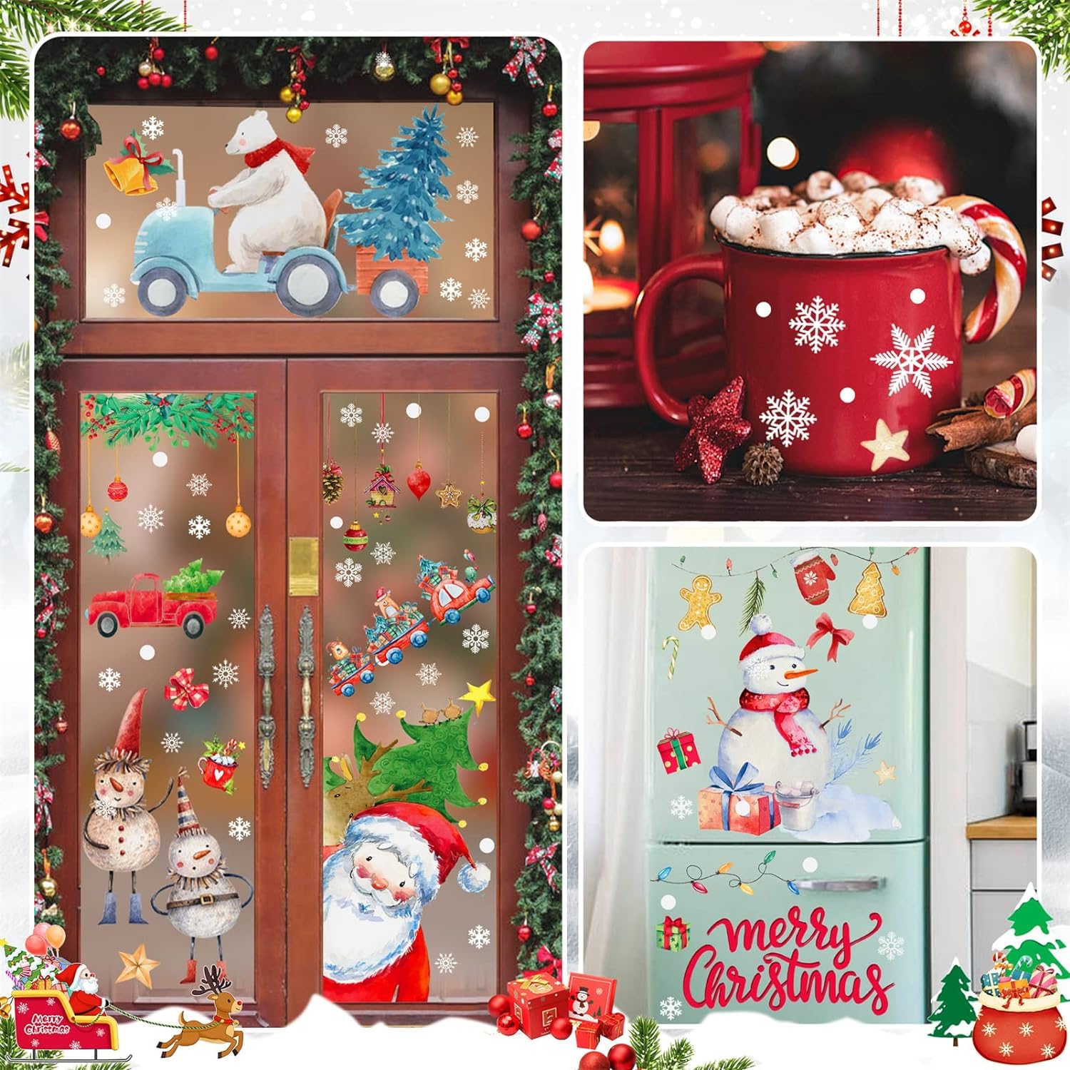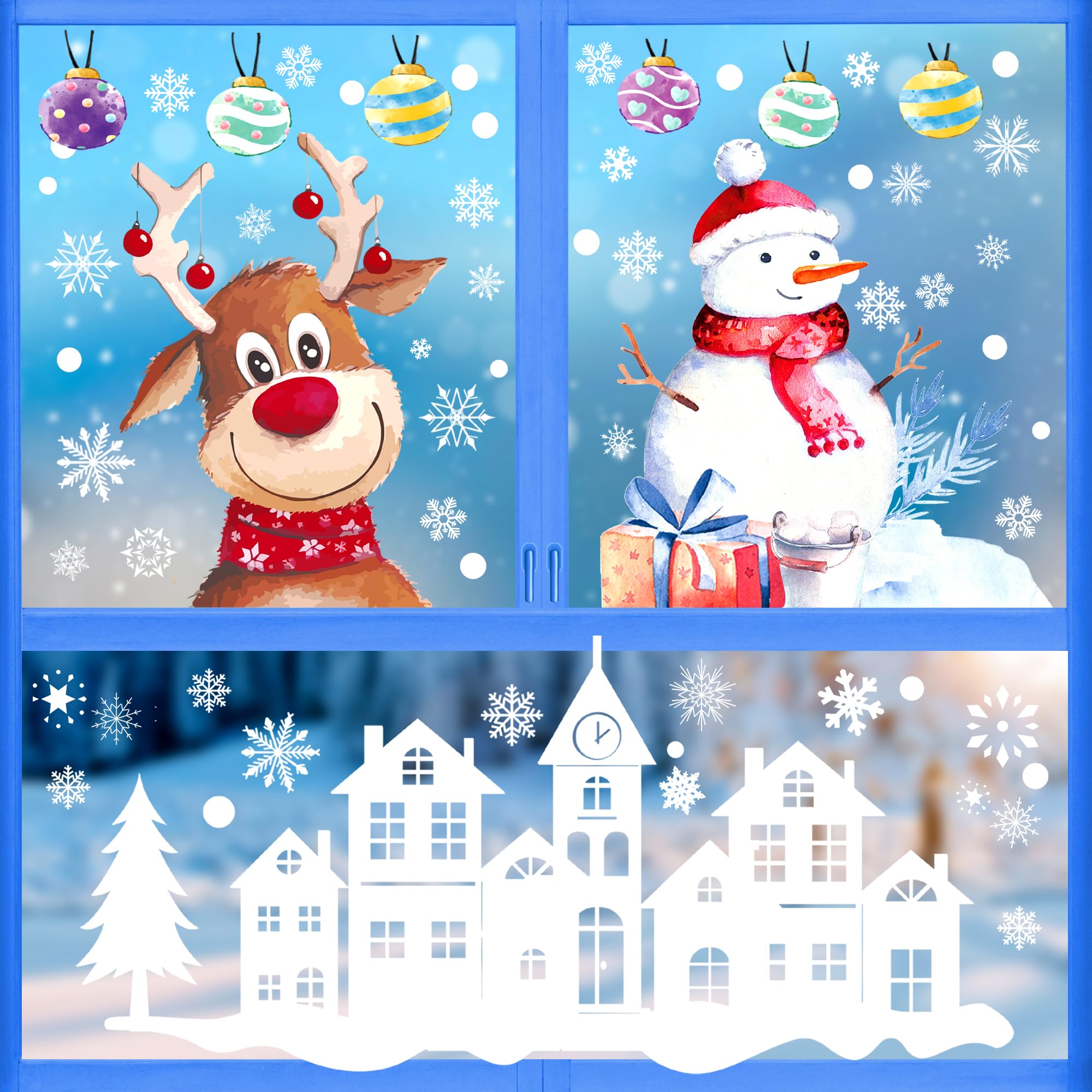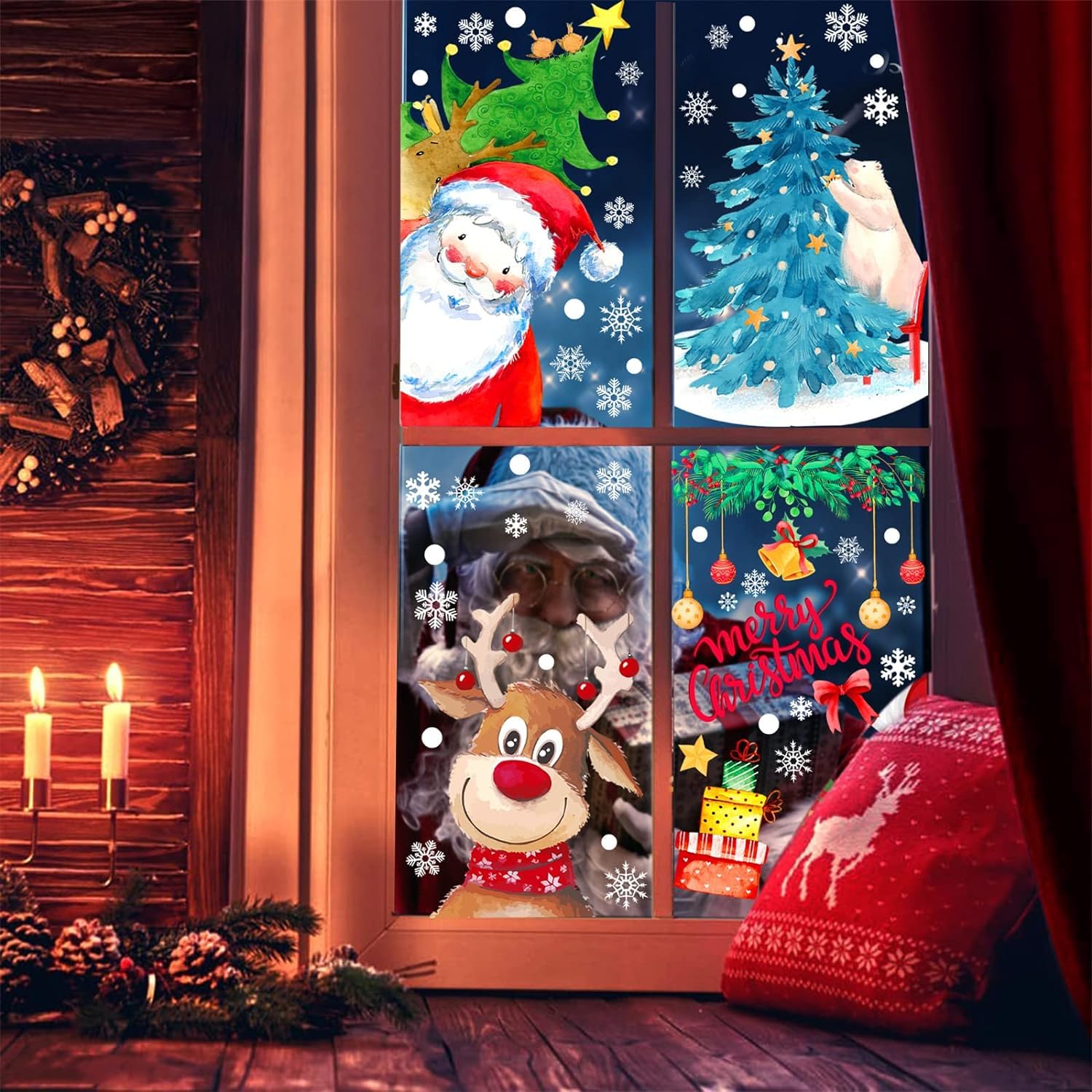 Aquarell Fensterbilder Weihnachten,Selbstklebend Weihnachtsfensterbilder Doppelseitig Fensterbild Weihnachten Wiederverwendbar, Kinder Fensterfolie Weihnachten Winter Static Fenster Fensteraufkleber
