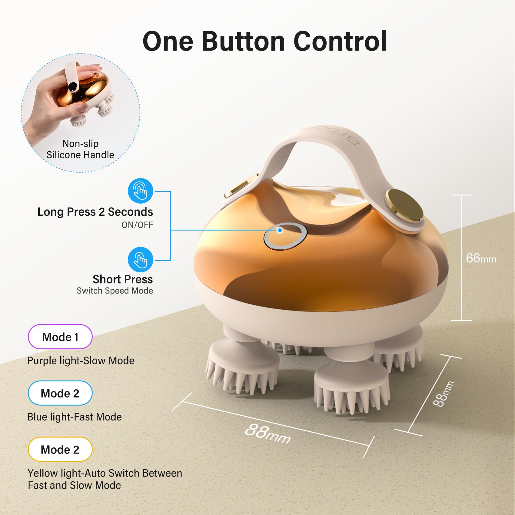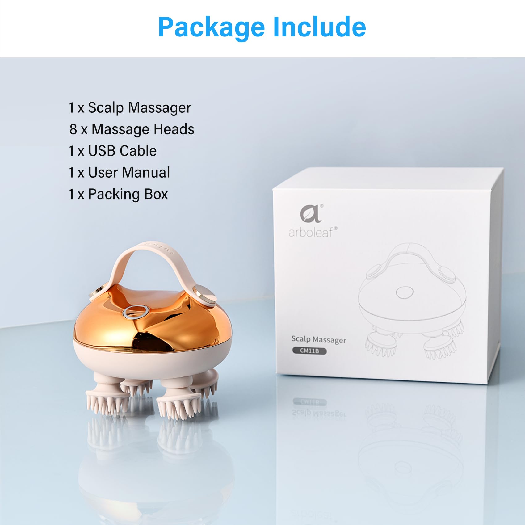 Arboleaf Elektrisches Kopfmassagegerät, IPX7 Wasserdicht, 8 Massageköpfe, 3 Massagemodi, Handliches Massagegerät für Entspannung & Tiefenreinigung (Golden)