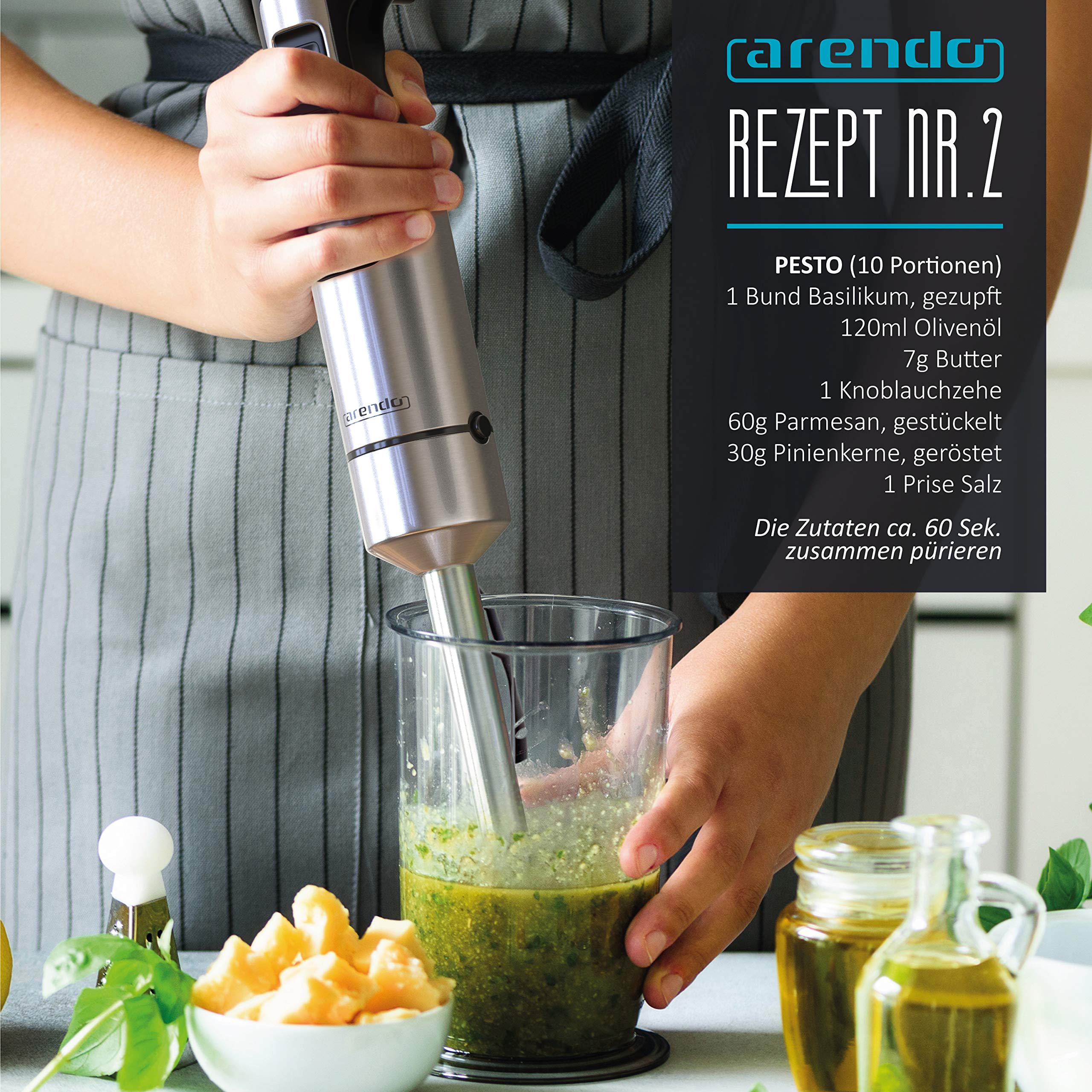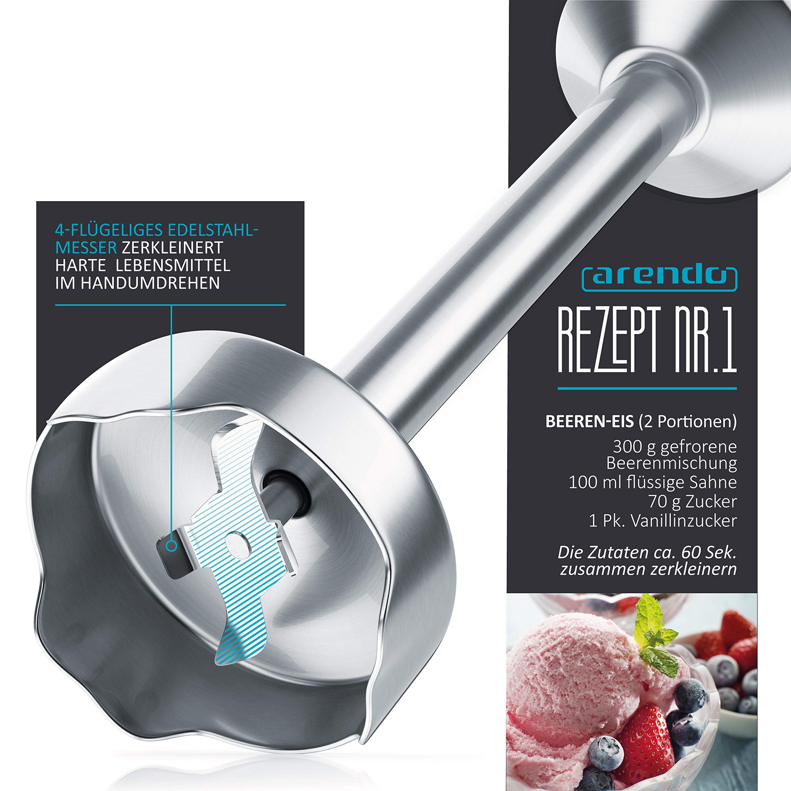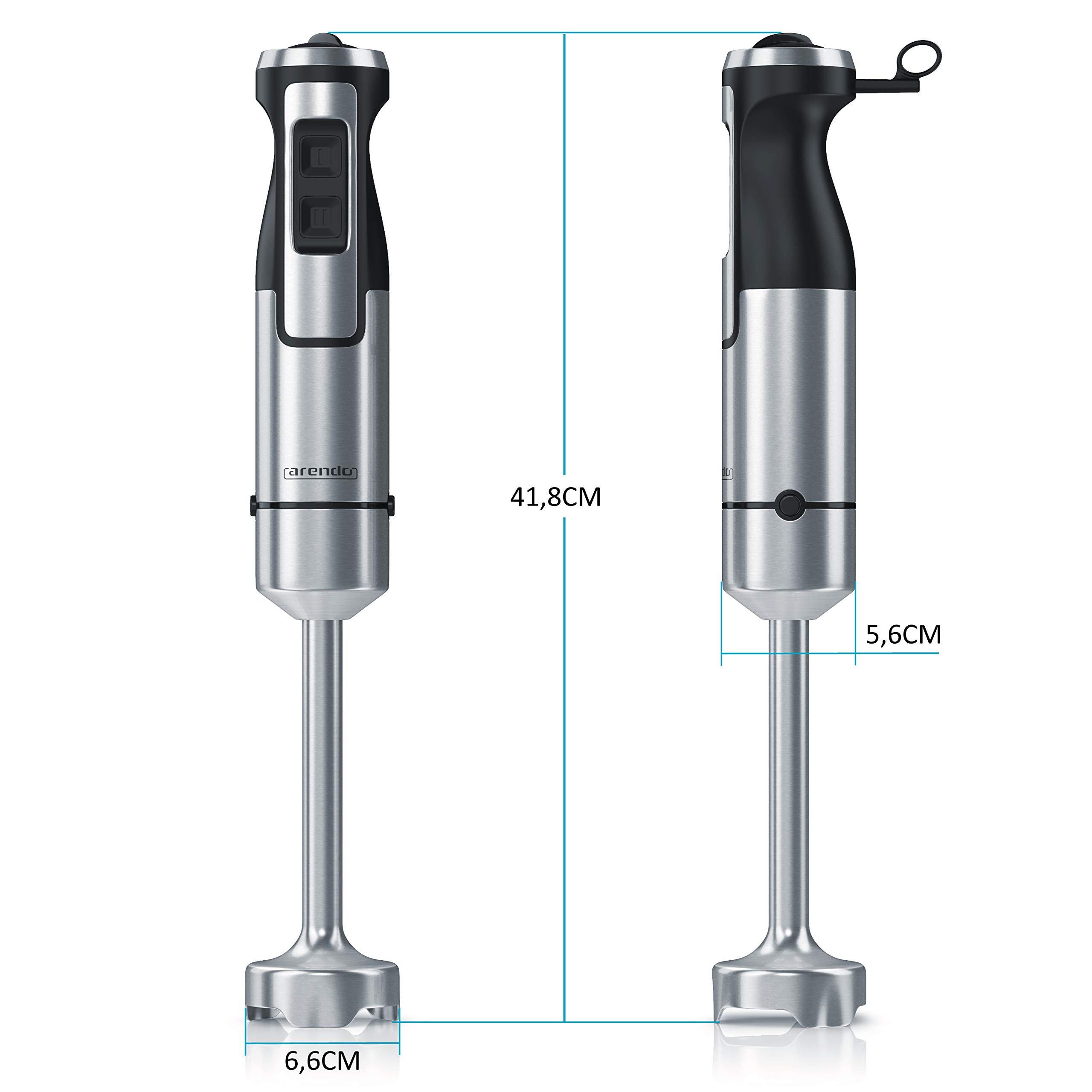 Arendo - Stabmixer 1000 Watt Edelstahl Set - vierflügeliges Messer - Pürierstab - stufenlose Geschwindigkeitsregelung - Turbotaste - Abnehmbarer Mixfuss
