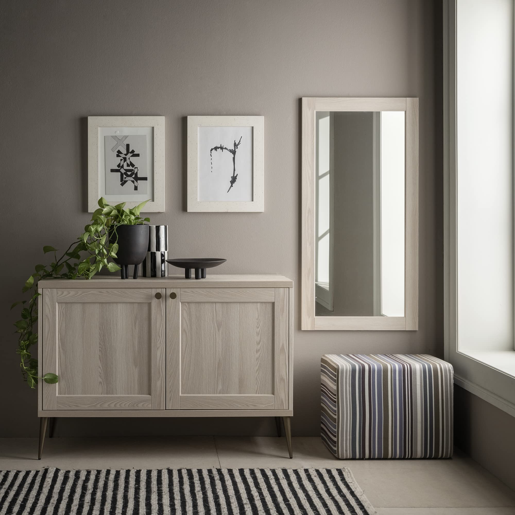 ARHome Wandspiegel, 90 x 60 cm, Esche Creme, Spiegel, Made in Italy