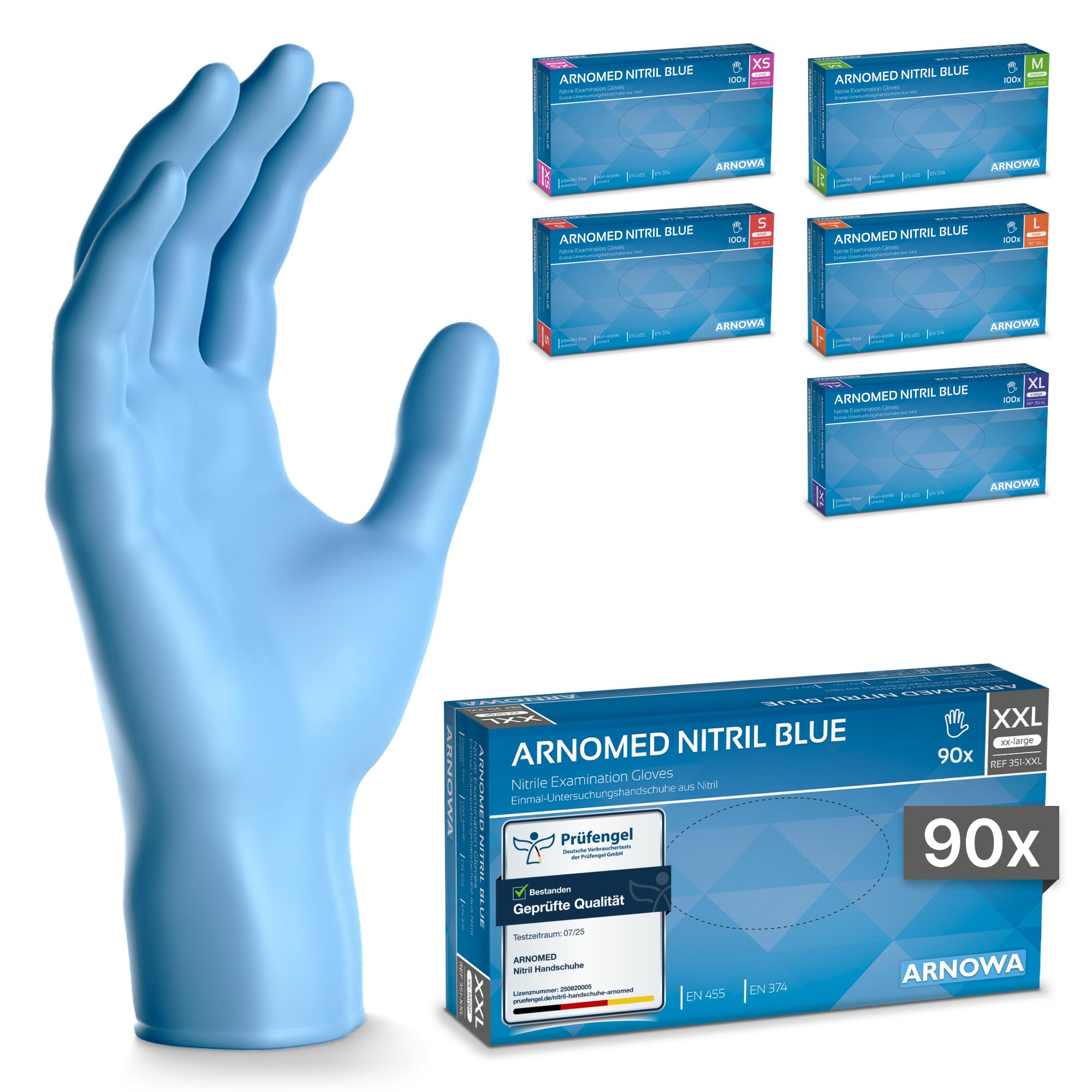 ARNOMED Nitril Einweghandschuhe 90 Stück/Box, XXL, puderfreie & latexfreie Einmalhandschuhe, Blaue Nitrilhandschuhe, in Gr. XS, S, M, L, XL & XXL verfügbar