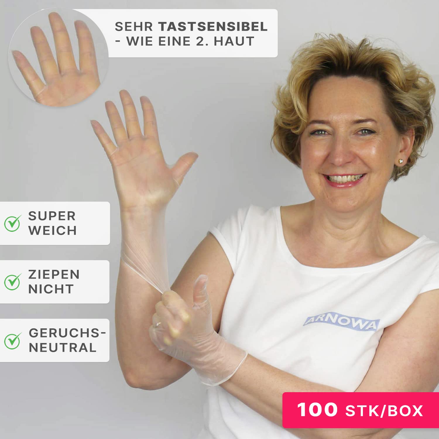 ARNOMED Einweghandschuhe XL, Vinyl Handschuhe, Einmalhandschuhe mit 100 Stück/Box, Handschuhe Einweg puderfrei, Gummihandschuhe Einweg latexfrei, Einweg Handschuhe, Einmalhandschuhe in S, M, L, XL