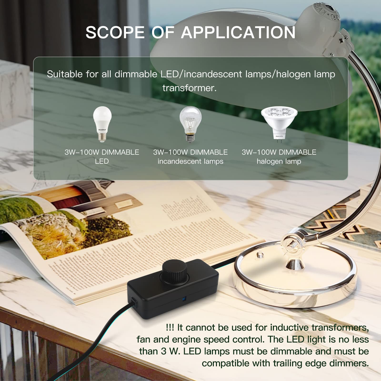 Aroidful Dimmer für LED Lampen 230v Schnurdimmer LED AC 220-240V/50HZ LED Phasenabschnittdimmschalter 3-100 W Dimmer Schalter für dimmbar Glühlampen und LED Lampen,Schwarz
