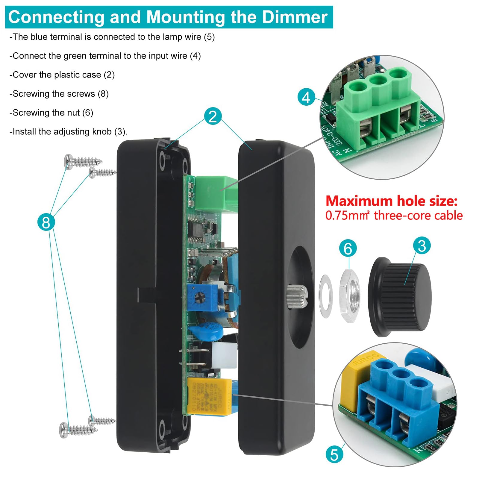 • ACHTUNG: Bitte überprüfen Sie vor dem Kauf, ob Ihre LED-Lampen mit "dimmbare"gekennzeichnet sind. Die LED-Lampe darf nicht weniger als 3 W haben. Die LED Lampe muss dimmbar und mit Hinterkanten-Dimmern kompatibel sein. Beim Berühren von stromführenden Teilen besteht Stromschlaggefahr. Ein elektrischer Schlag kann tödlich sein. Trennen Sie das Gerät von der Stromversorgung, bevor Sie es in Betrieb nehmen.