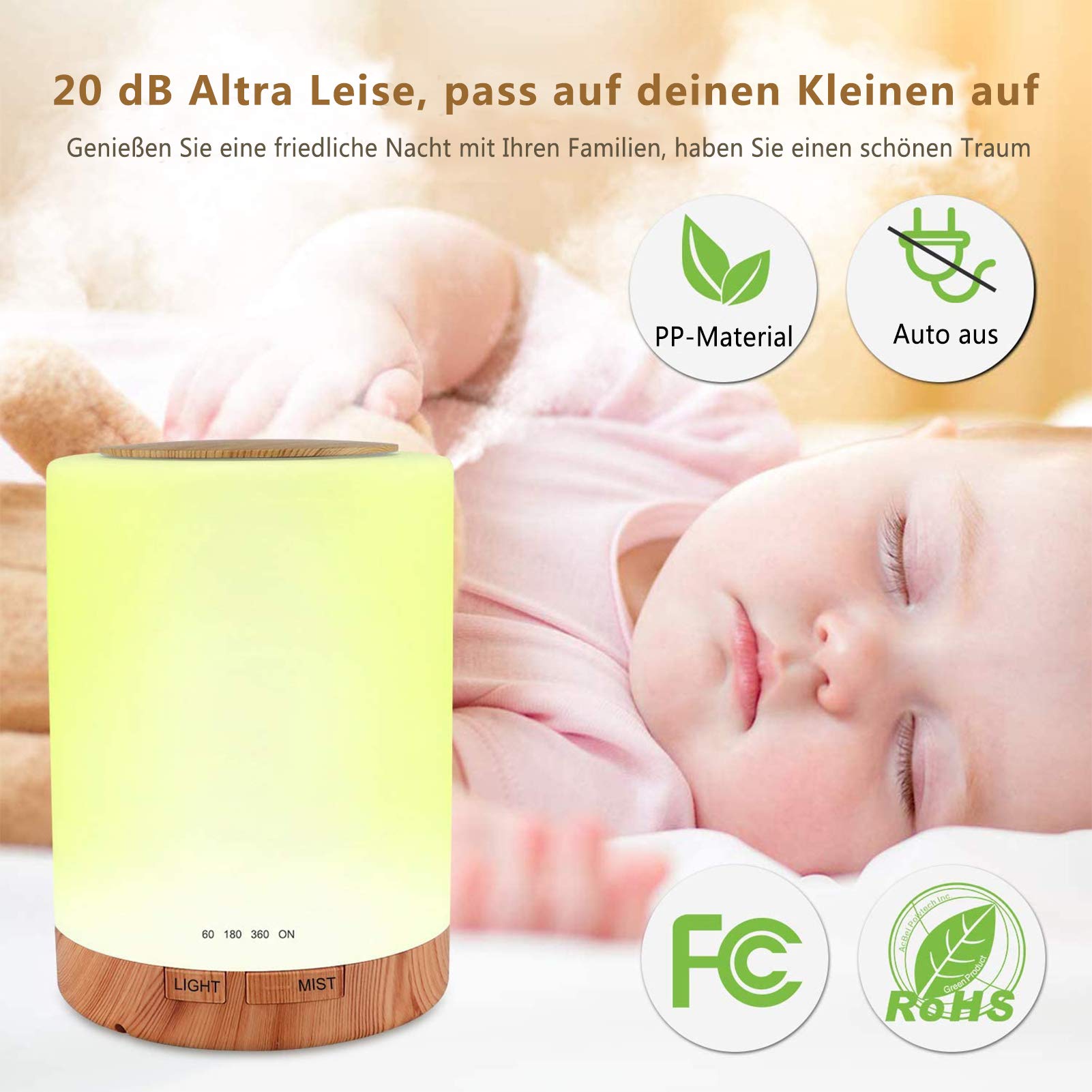 Aroma Diffuser, 300ML Luftbefeuchter mit 6 * 10ml Ätherische Öle Set, Leise Ultraschall DuftöL Diffuser, Wasserlose Abschaltautomatik, 7 Farben LED Öle Diffusor Aromatherapie für Raum, Büro, Yoga, Spa