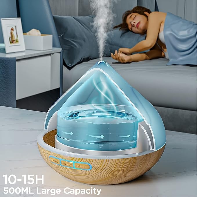 • AROMATHERAPIEGERÄT: Unser Diffusor für ätherische Öle hat ein Fassungsvermögen von 500 ml und verwendet modernste Wellendiffusionstechnologie; um ätherische Öle für ultimatives Wohlbefinden zu zerstäuben; Der Aromatherapie-Diffusor umfasst 7 Umgebungslichtmodi mit zwei Intensitätseinstellungen für 14 verschiedene Lichtkombinationen