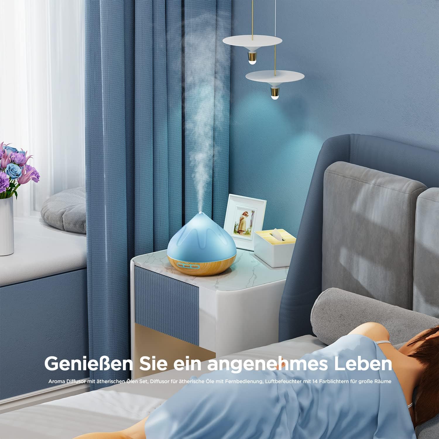Aroma Diffusor Set für Ätherische Öle 500 ML, 8 x10 ML Ätherische Öle, Aromatherapie Diffuser Mit Fernbedienung,14 Farben LED Mit 4 Timer-Einstellung