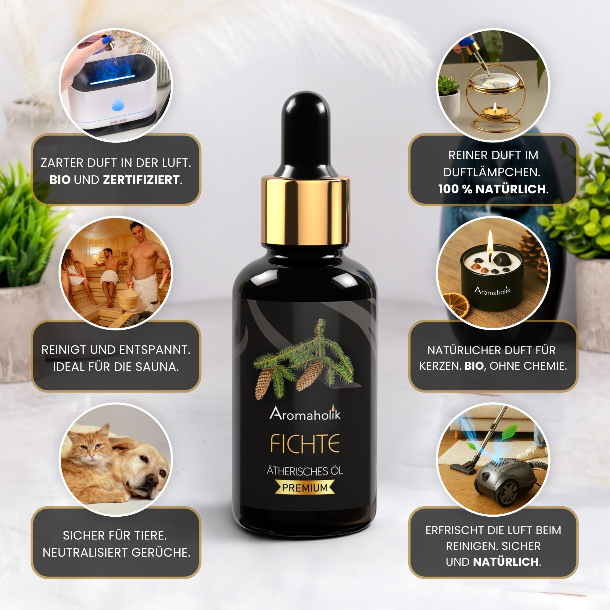 Mit dem Aromaholik Fichtennadelöl BIO holst du dir die frische, kraftvolle Atmosphäre des Waldes nach Hause und geniesst die vielseitigen Vorteile eines hochwertigen ätherischen Fichtennadelöls.