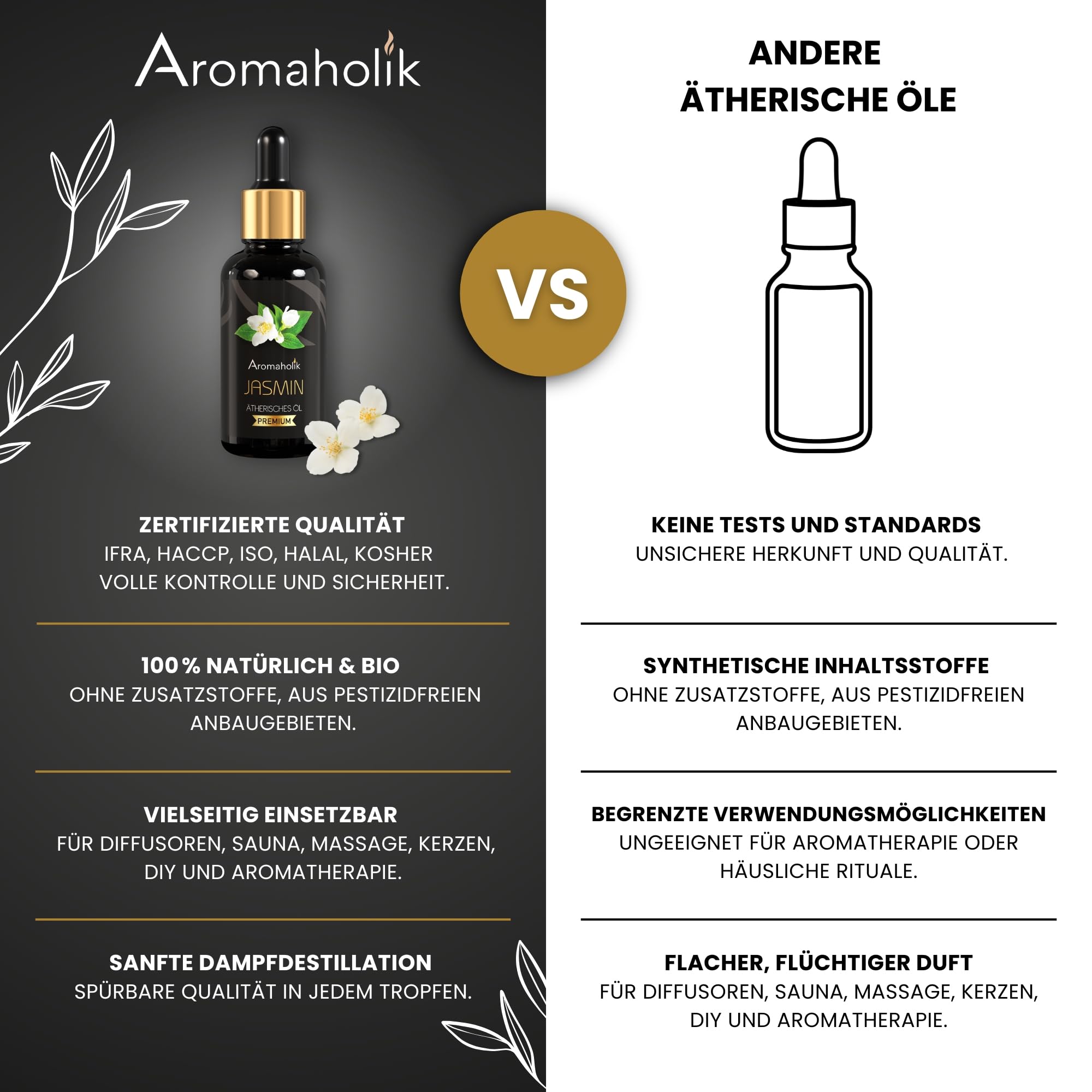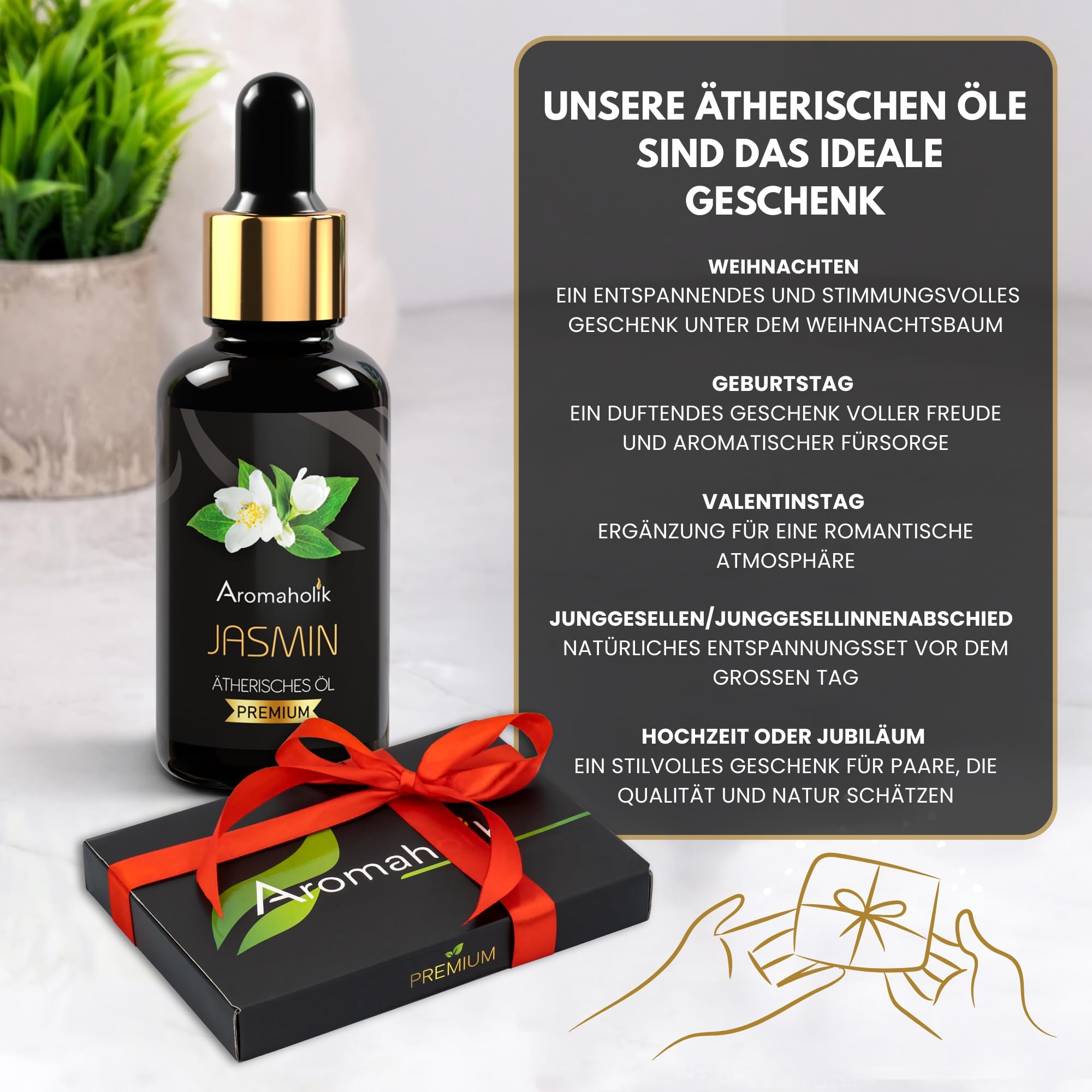 Aromaholik Jasminöl BIO 100% naturrein – Ätherische Öle für Diffuser & Aroma Diffuser – Zertifiziertes ätherisches Öl aus Indien – Jasmine Essential Oils 30ml für Sauna & Massage